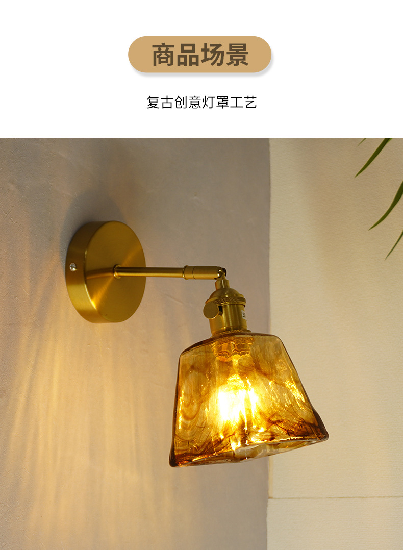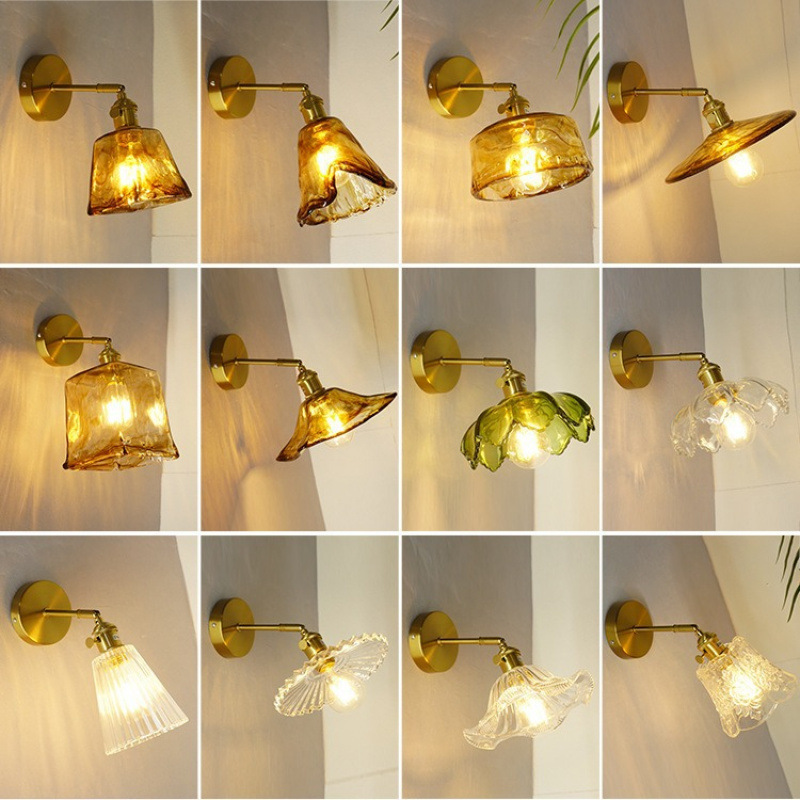 간단한 복고풍 유리 침실 머리맡 벽 램프 거실 바 램프 현대 통로 연구 배경 벽 황동 램프스토어 가기