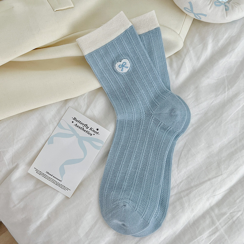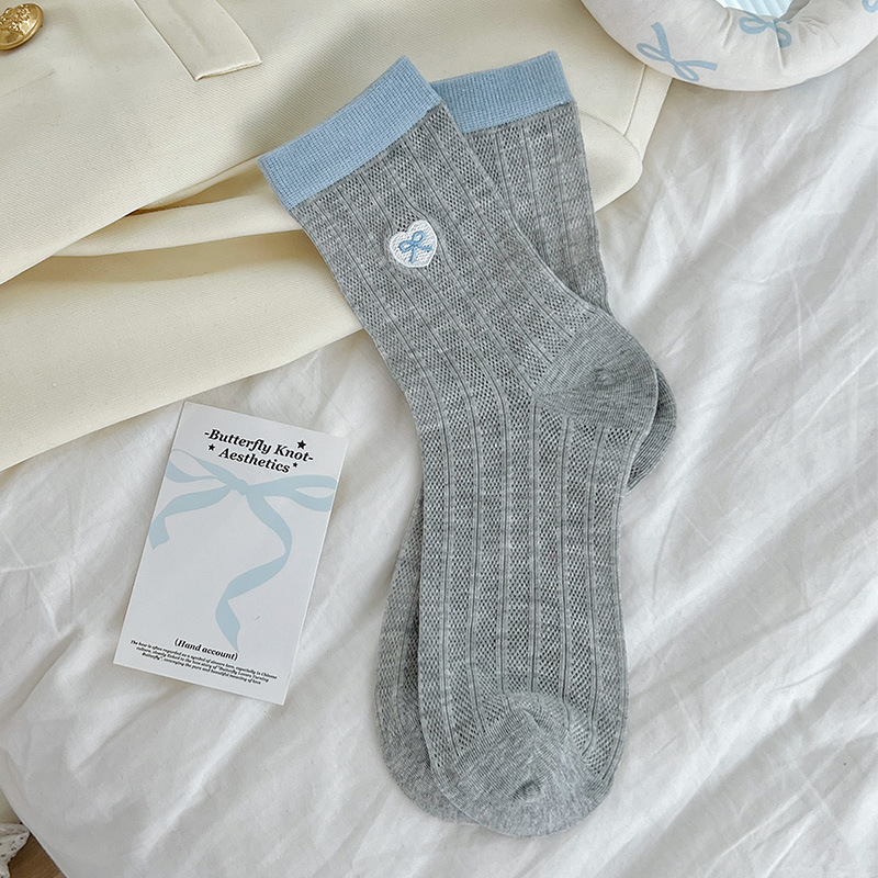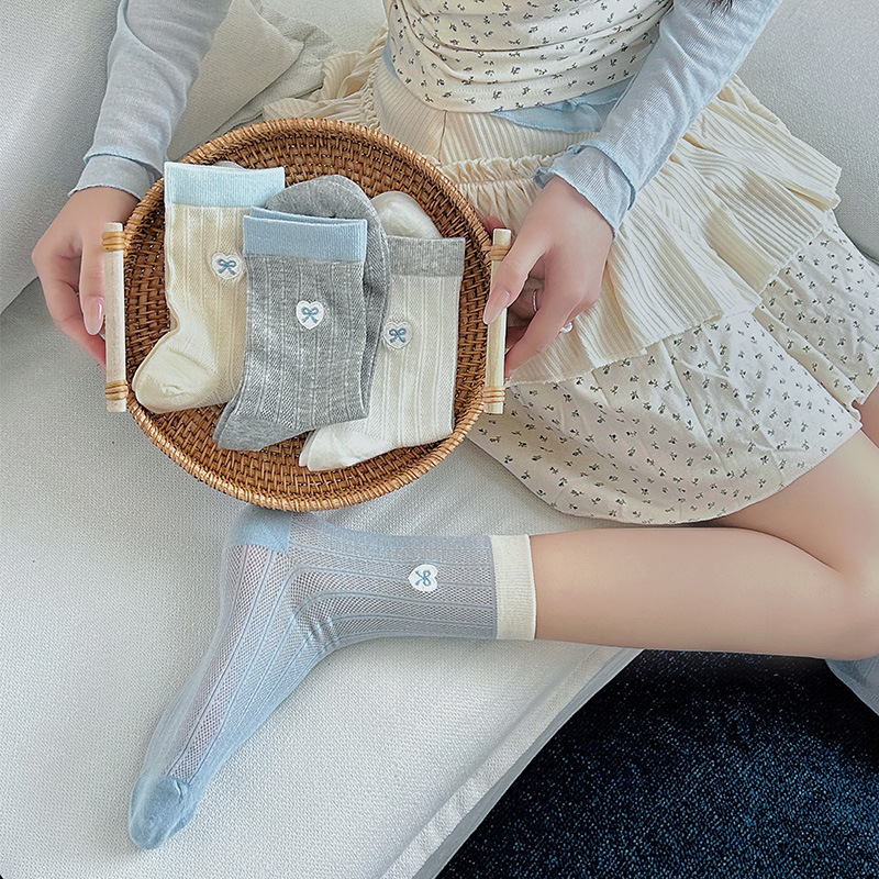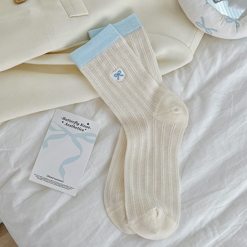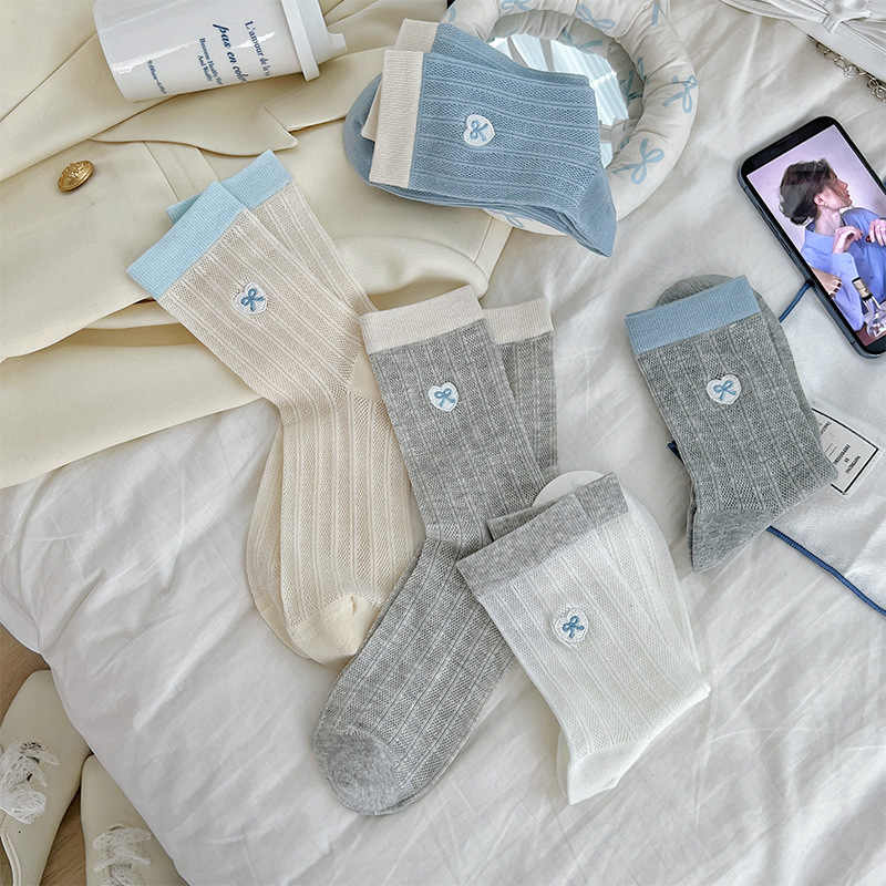 일본 학교 양말 어린이 회색-파란색 대비 색상 Luo Kou 스티칭 튜브 양말 봄과 여름 얇은 메쉬 통기성 파일 양말