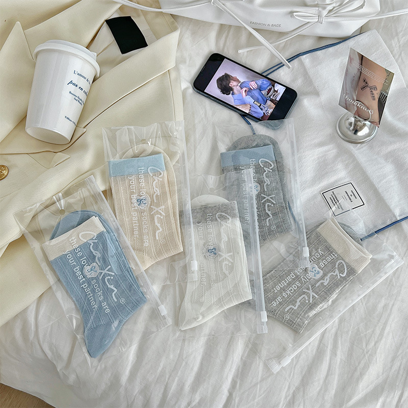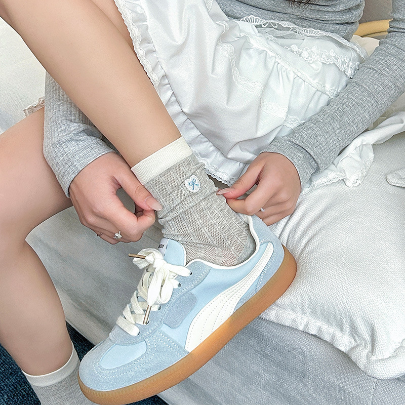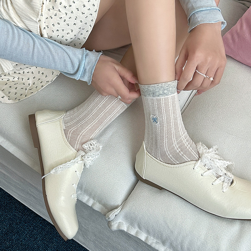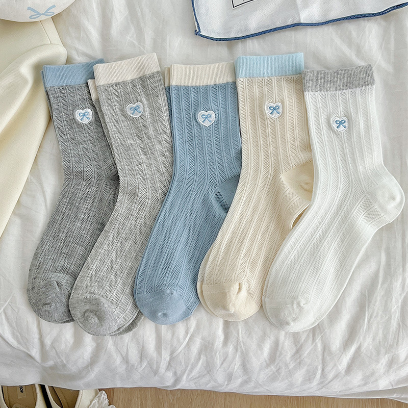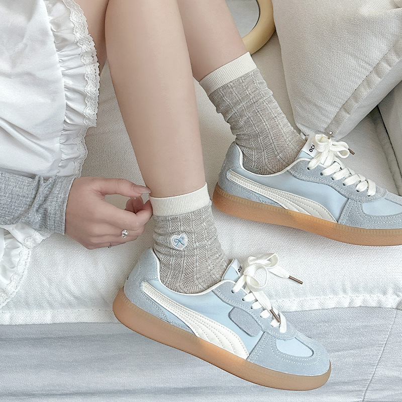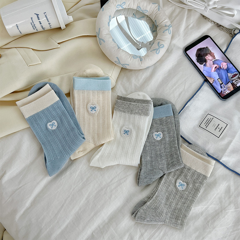 일본 학교 양말 어린이 회색-파란색 대비 색상 Luo Kou 스티칭 튜브 양말 봄과 여름 얇은 메쉬 통기성 파일 양말