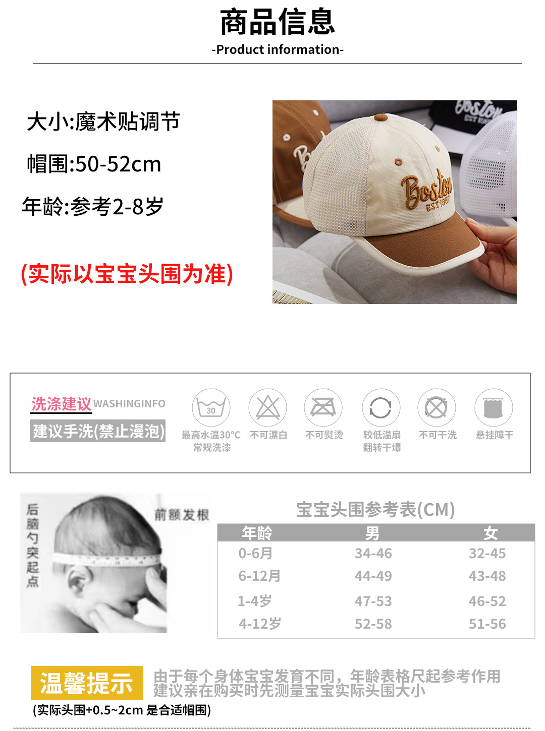 • 모자 둘레 48-52cm, 대략 2-4세에게 적합