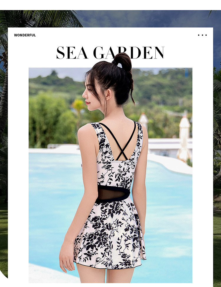 여성용 수영복 2025 새로운 원피스 서스펜더 프린트 일본식 작은 신선한 섹시한 백리스 슬리밍 슬림 온천 수영복