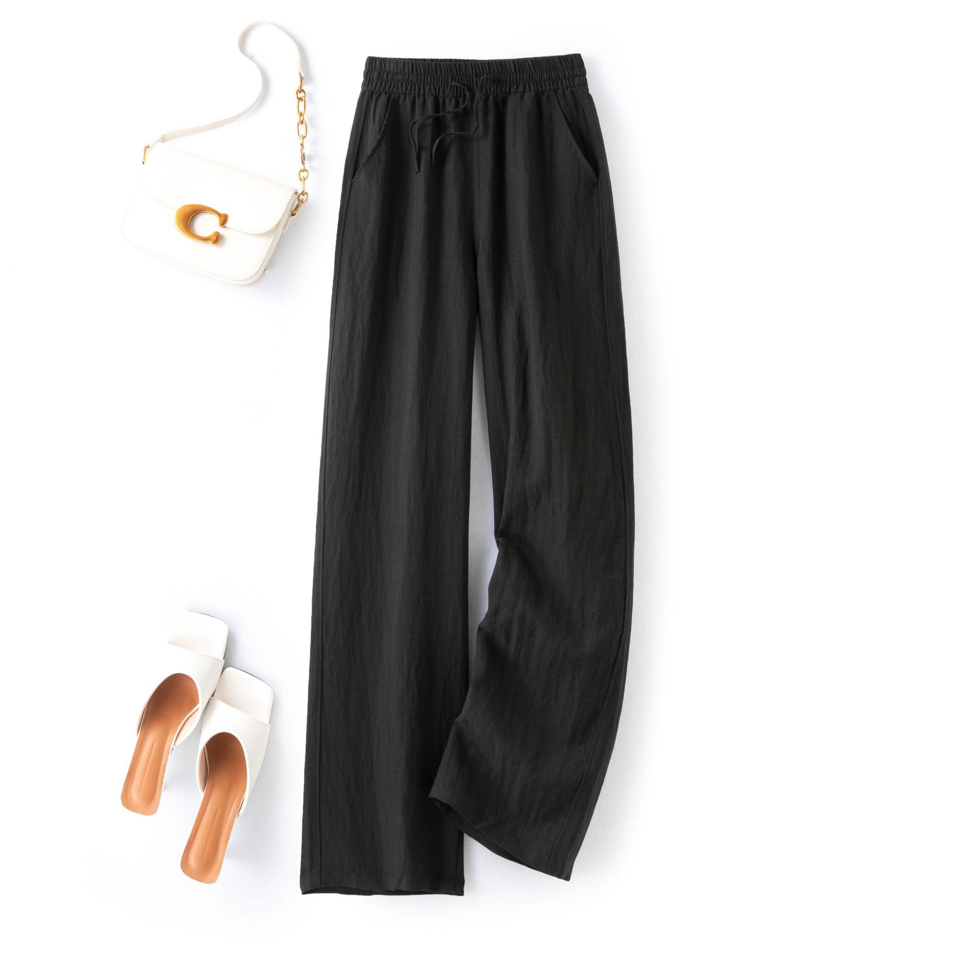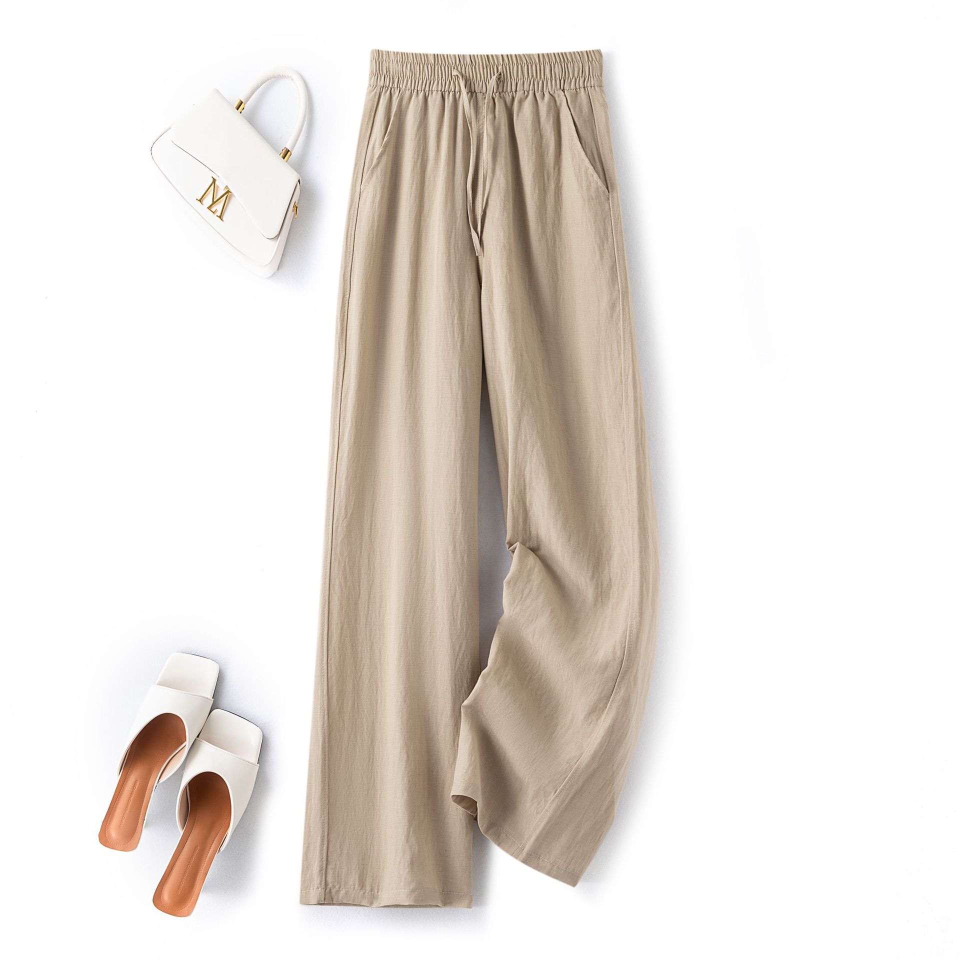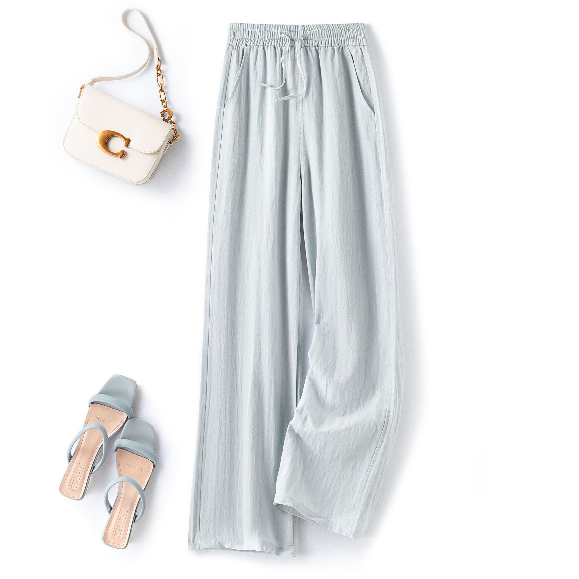 [Lyocell Tencel Linen] 가벼운 럭셔리 텐셀 린넨 넓은 다리 바지 여성 여름 통기성 편안한 슬리밍 스트레이트 다리 바지스토어 가기