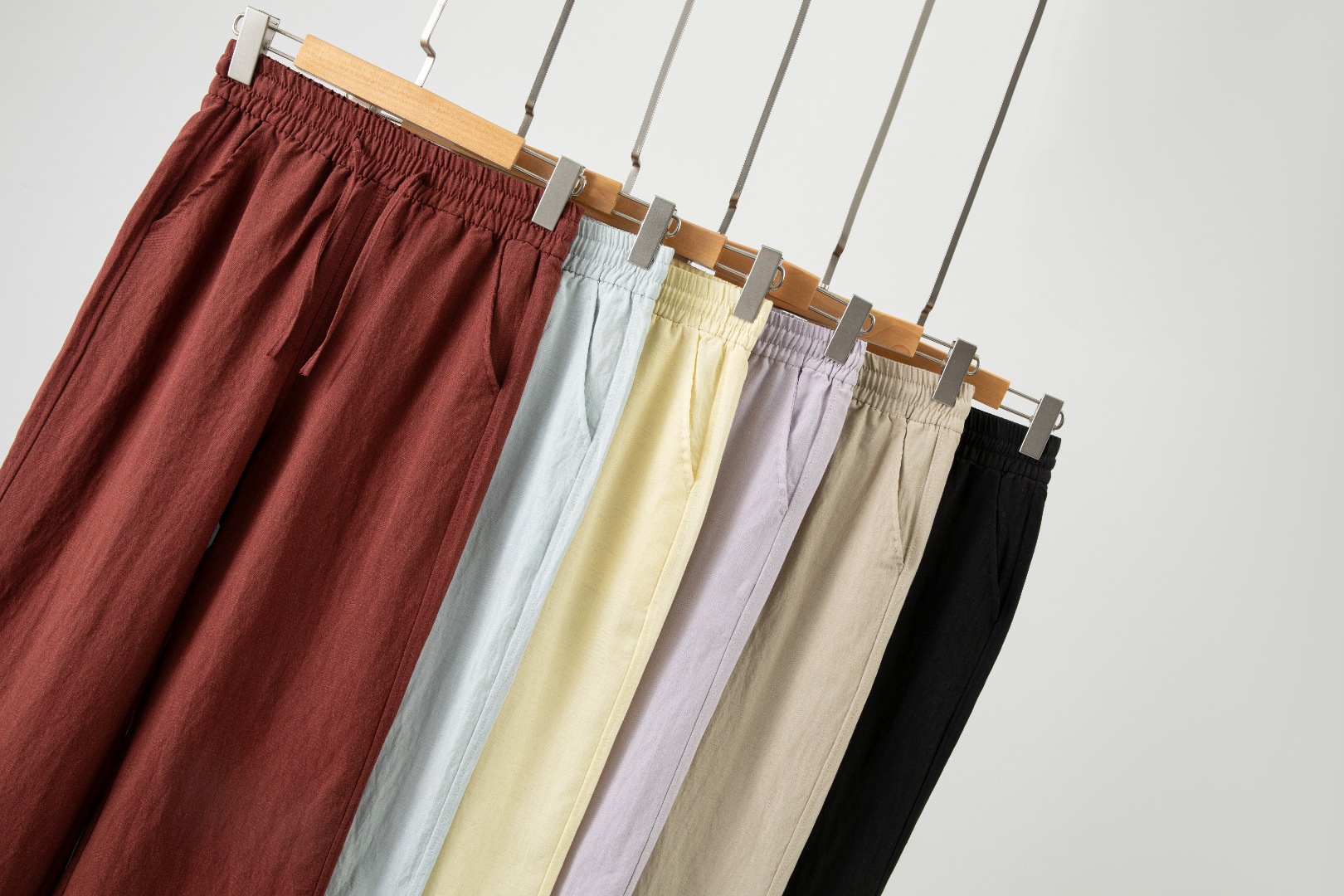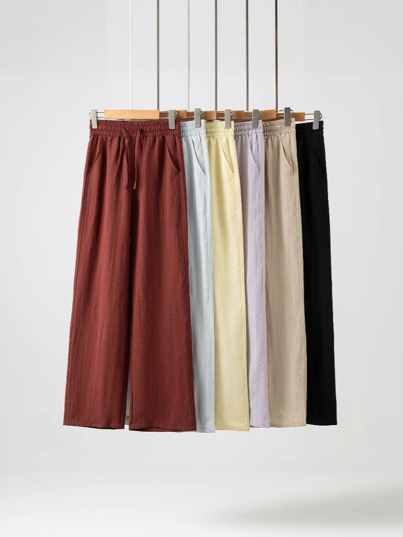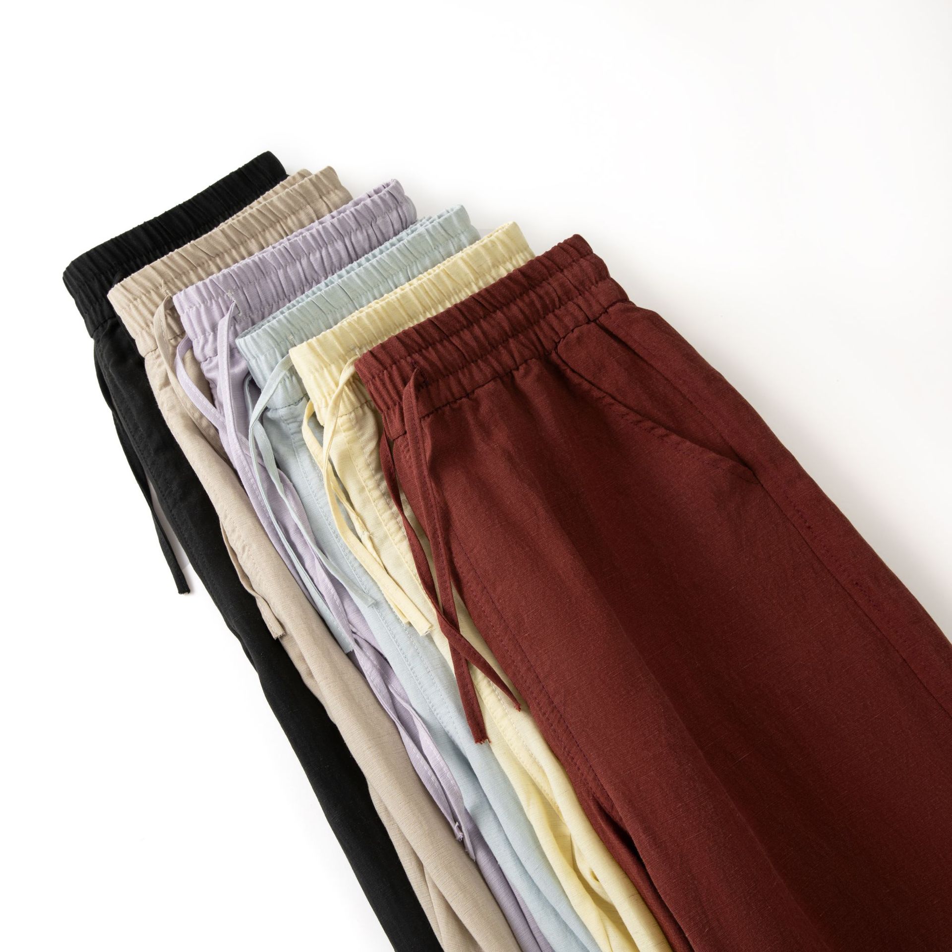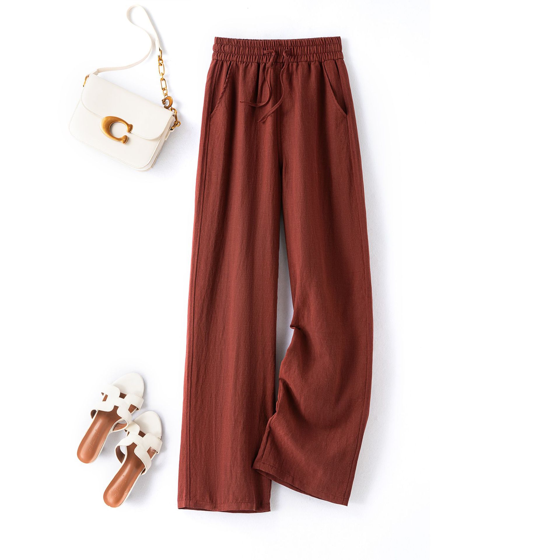 [Lyocell Tencel Linen] 가벼운 럭셔리 텐셀 린넨 넓은 다리 바지 여성 여름 통기성 편안한 슬리밍 스트레이트 다리 바지스토어 가기