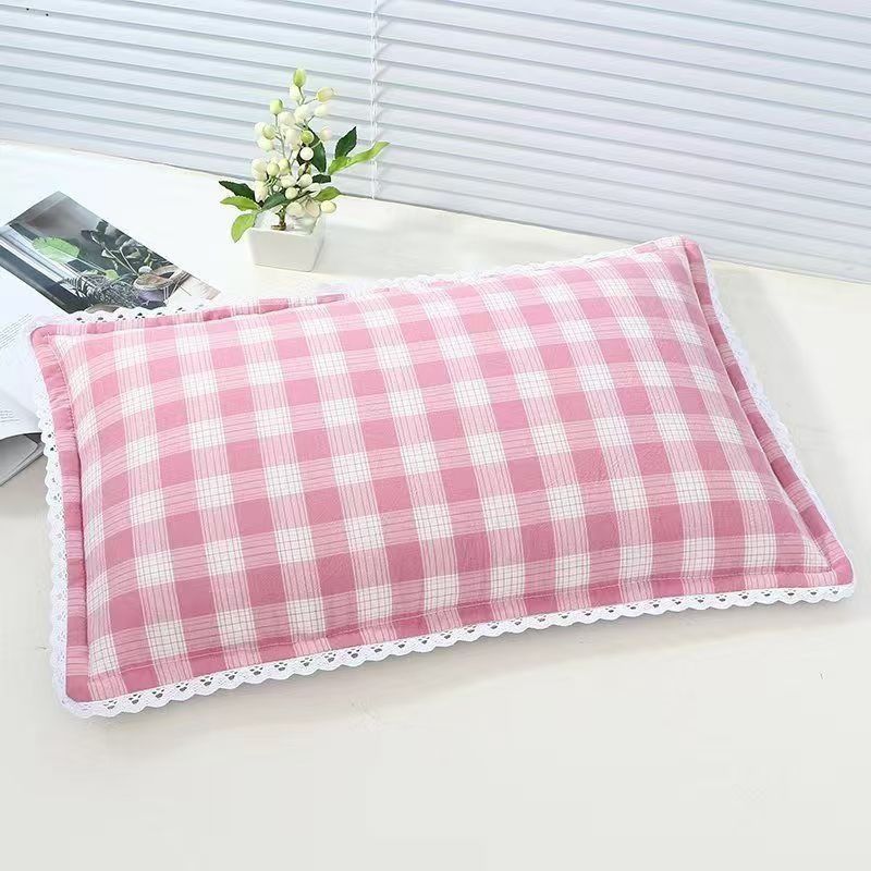 • 핑크 미디엄 그리드(순수 메밀껍질 충전재) 싱글 베개