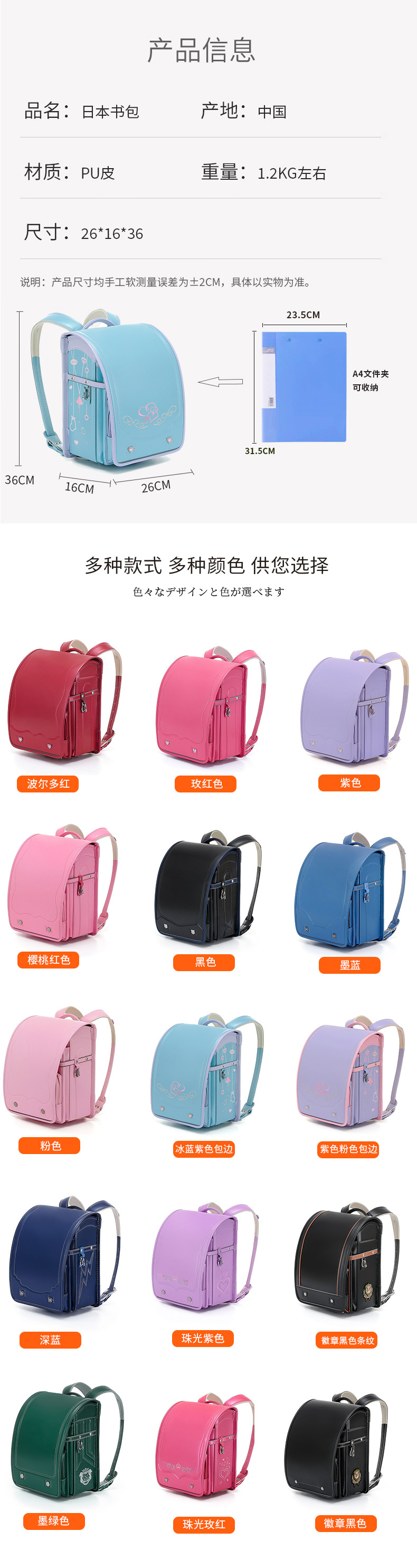 일본 학교 가방 새로운 초등학생 어린이 학교 가방 부담을 줄이는 중립 남성과 여성 PU 가죽 가방 배낭 도매 배송스토어 가기