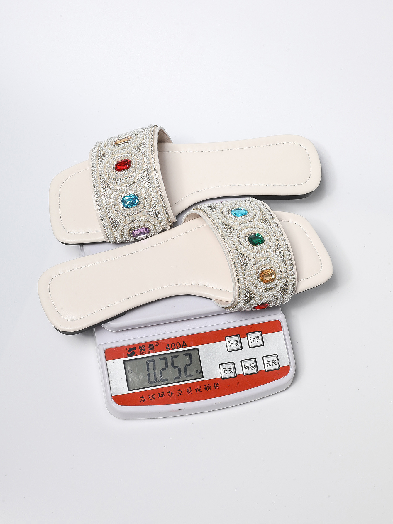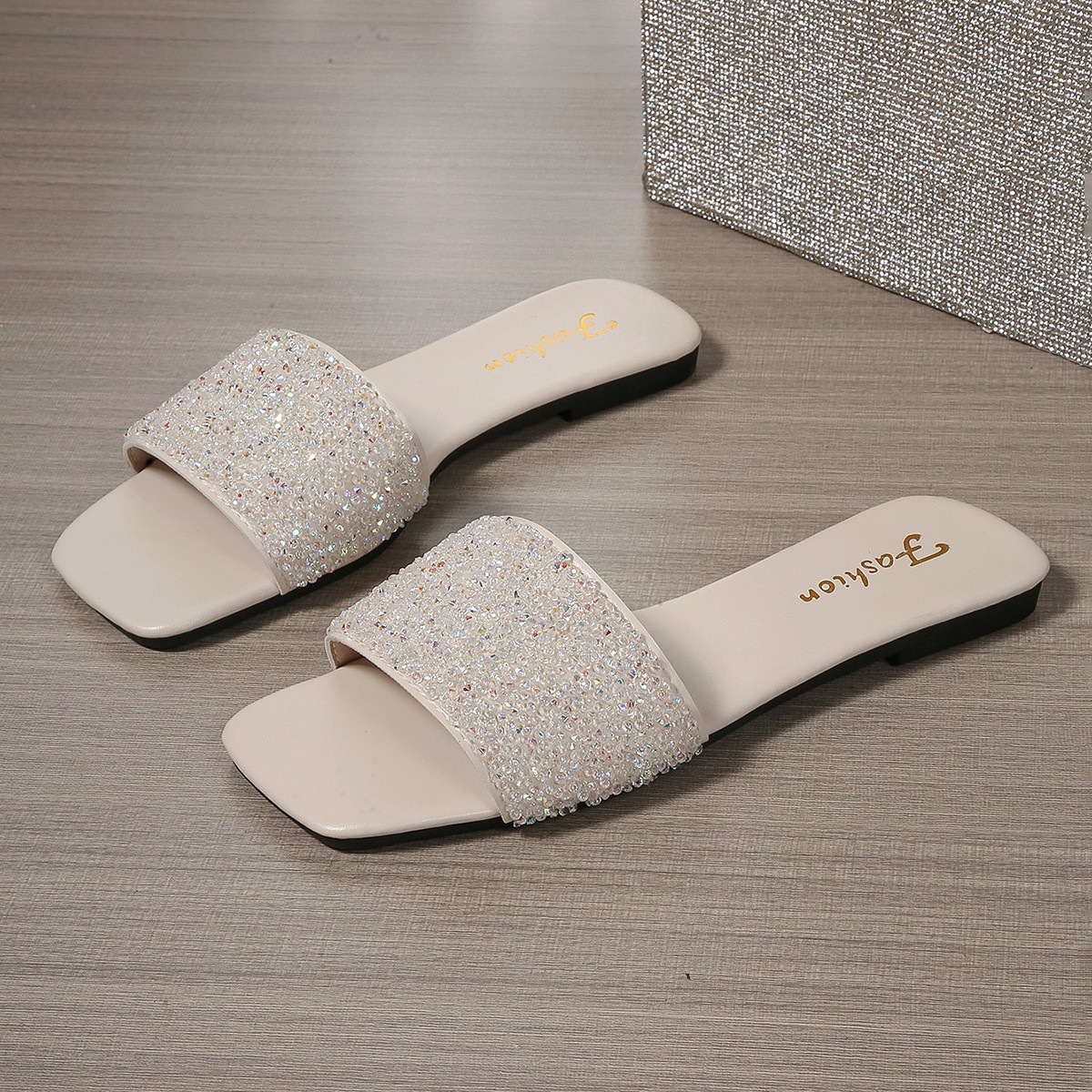 2025 여름 새로운 대외 무역 대형 컬러 라인 석 슬리퍼 여성 캐주얼 스퀘어 헤드 플랫 바닥 원 라인 비치 여성 신발 유행