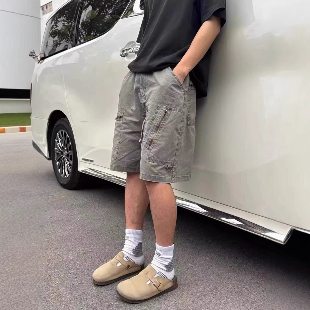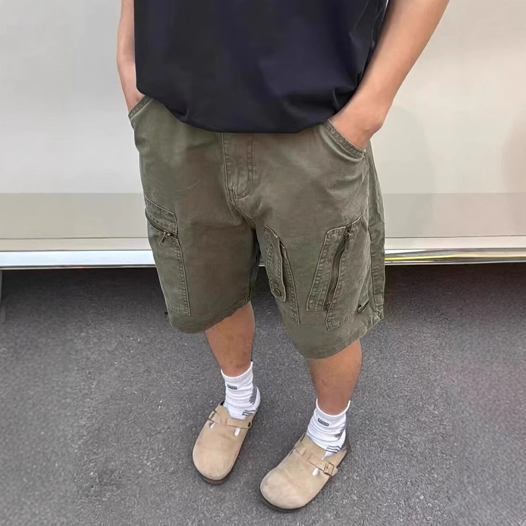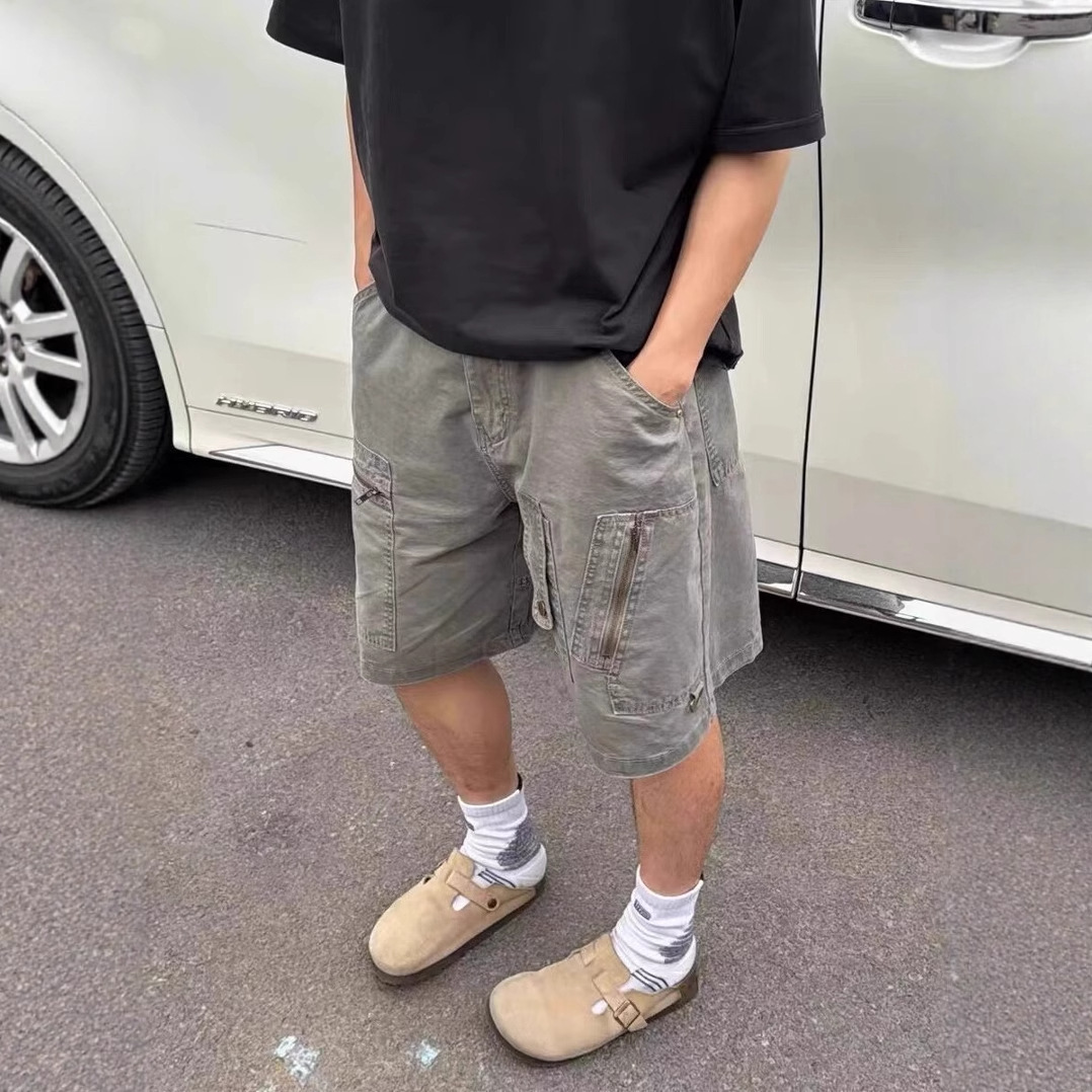 아메리칸 여름 신상 멀티 포켓 지퍼 디자인 스트레이트 레그 워크웨어 데님 반바지 트렌디 캐주얼 다용도 5부 팬츠