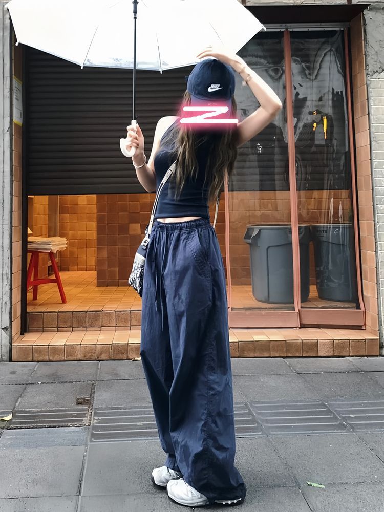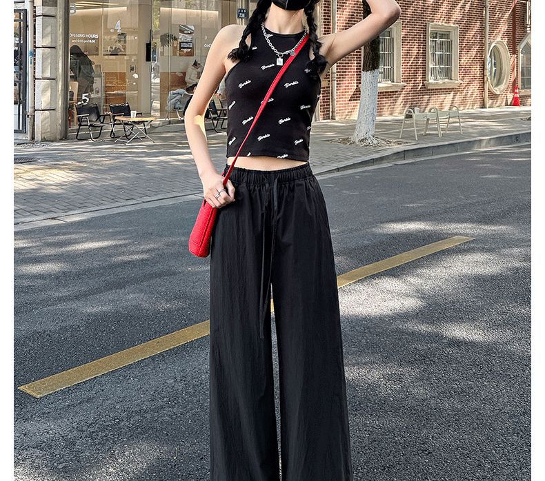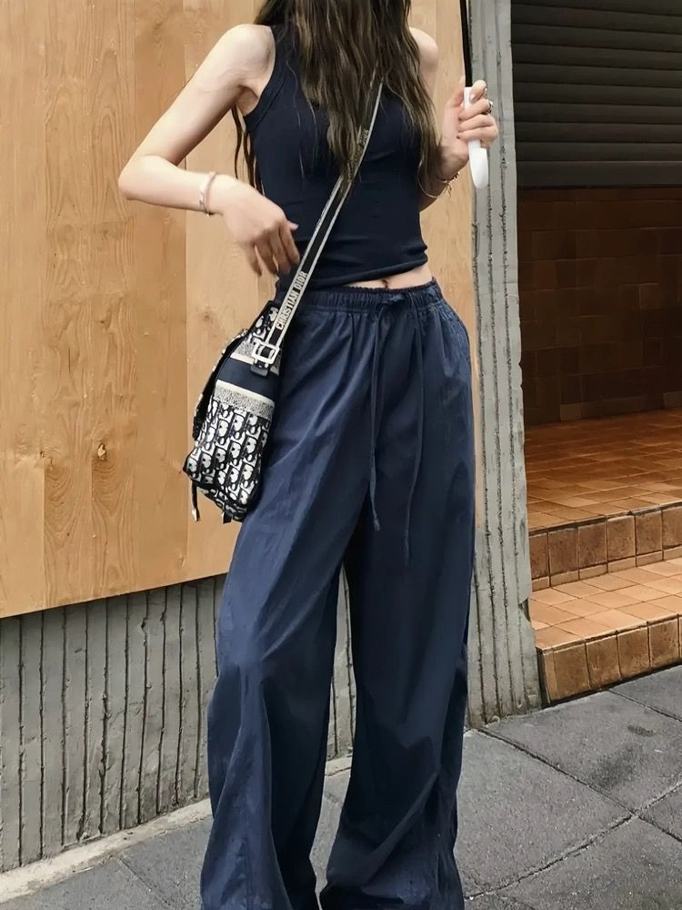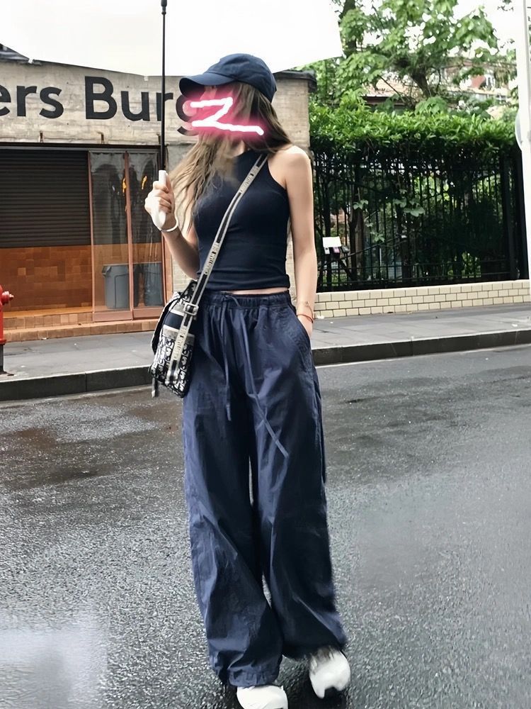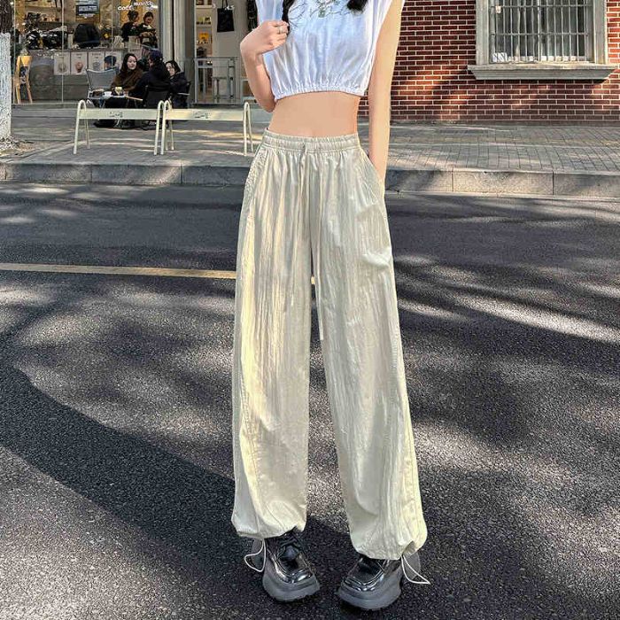 여성용 아메리칸 스타일 속건성 오버올, 여름용 얇은 드레이프 스트레이트 와이드 팬츠, 루즈한 캐주얼 스포츠 하이킹 팬츠스토어 가기