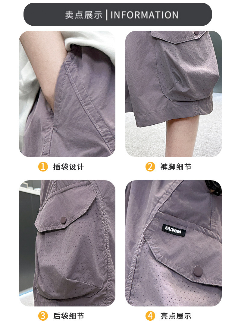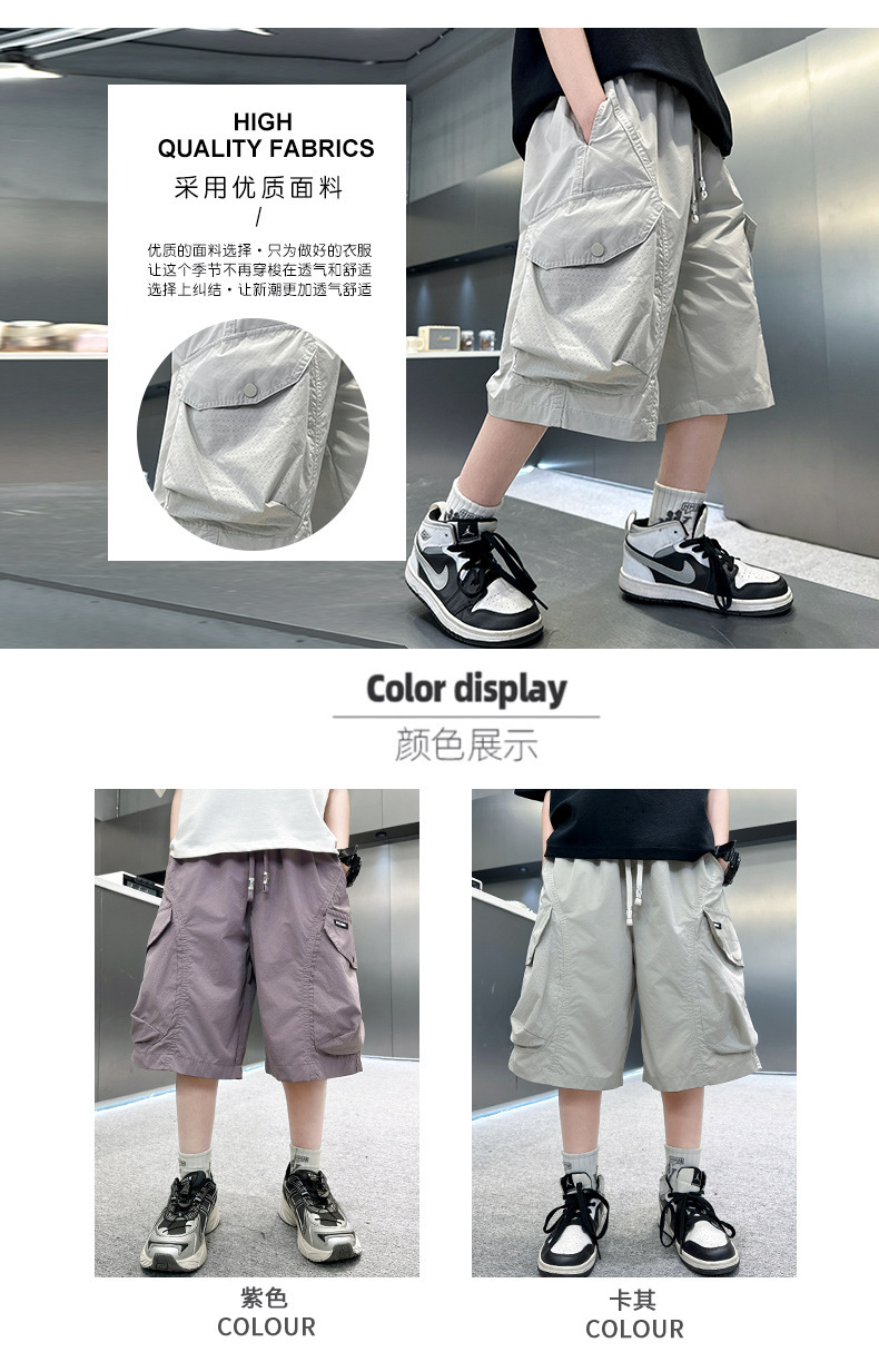 소년 반바지 여름 얇은 2025 새로운 어린이 여름 바지 중대형 소년 스트리트 작업복 5부 바지스토어 가기