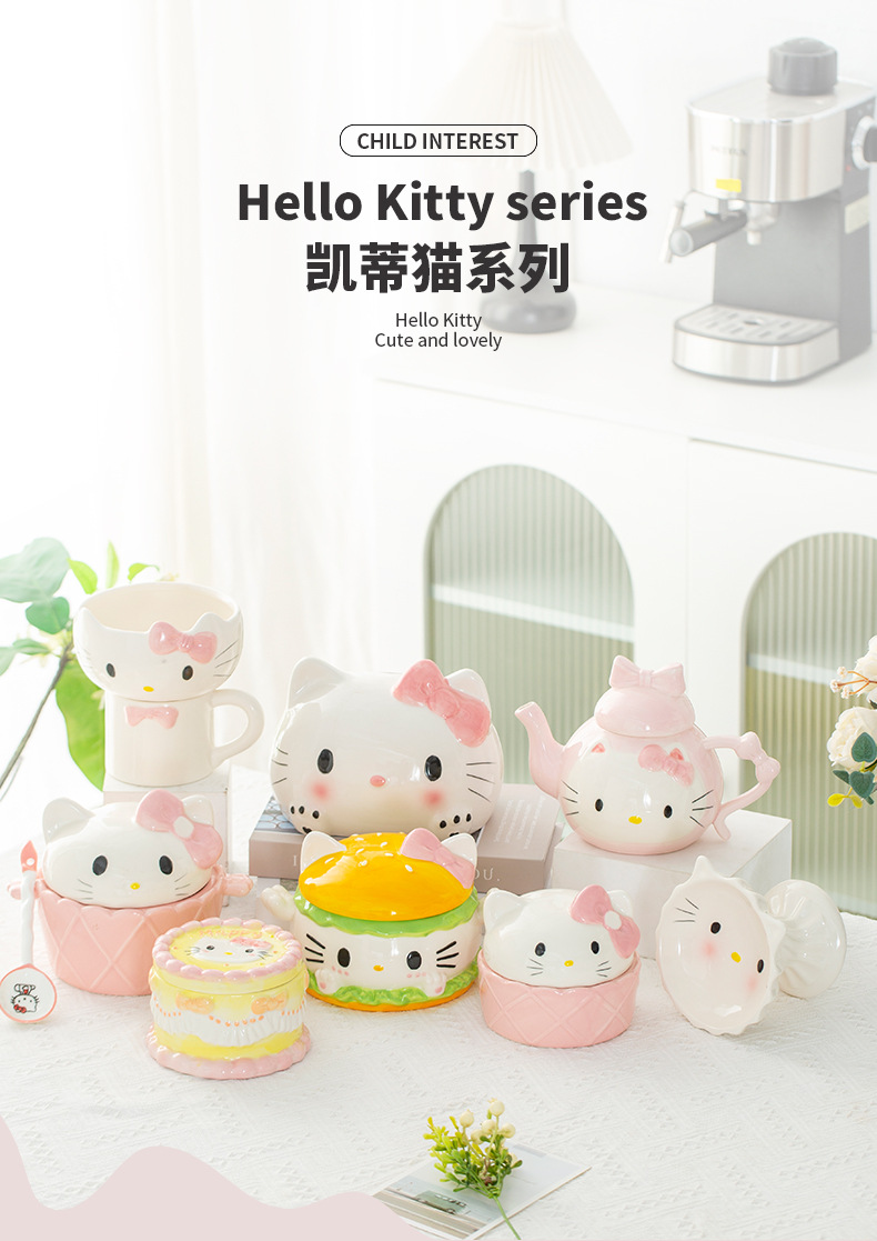 소녀 용 폭발 헬로 키티 시리즈 귀여운 식기 세라믹 언더 유약 컬러 홈 액세서리 생일 선물