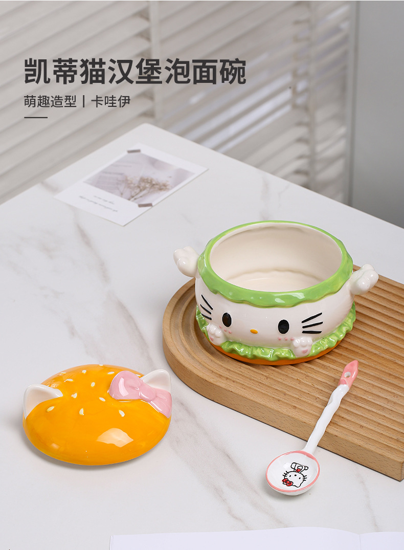 • 헬로키티 햄버거 인스턴트 누들 볼 + 스푼