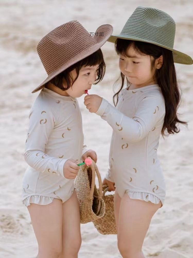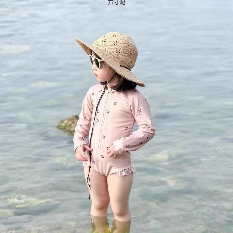 소녀 여름 어린이 원피스 긴팔 수영복 빠른 건조 아기 해변 선 스크린 소녀의 수영 레이스 귀여운 수영복