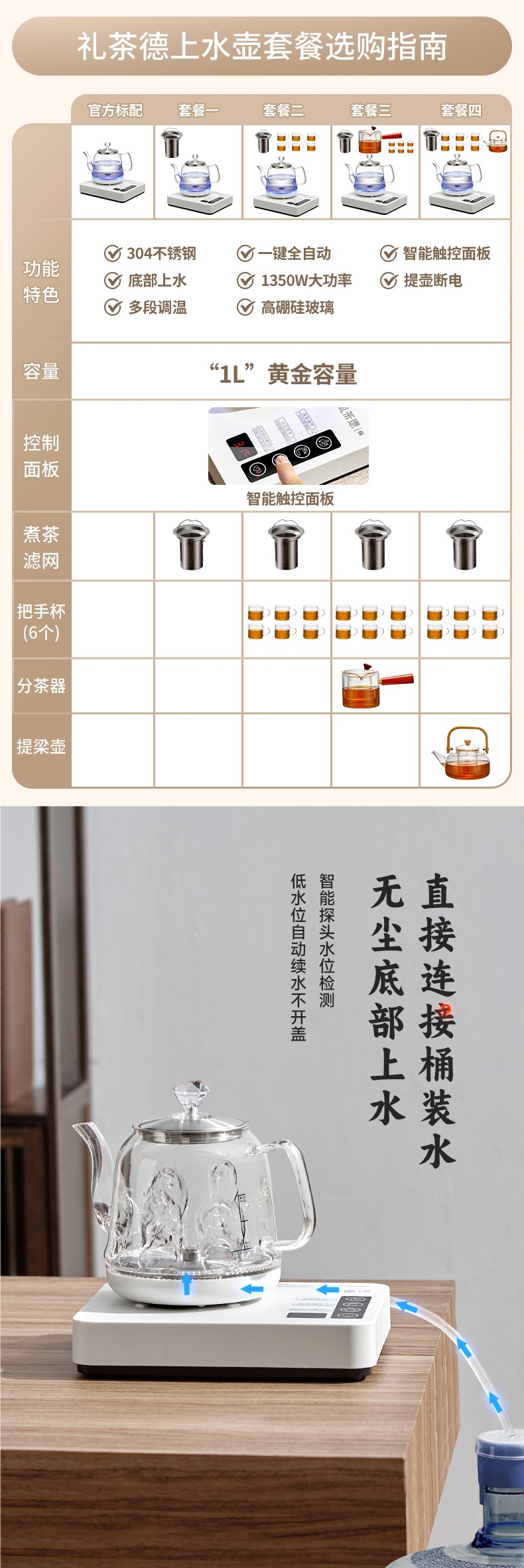 완전 자동 주전자, 전기 주전자, 티 테이블, 일체형 가정용 차 끓이기 세트, 물을 펌핑하는 특수 온수 주전자