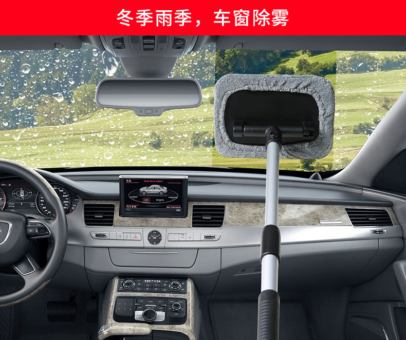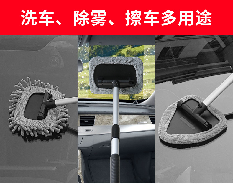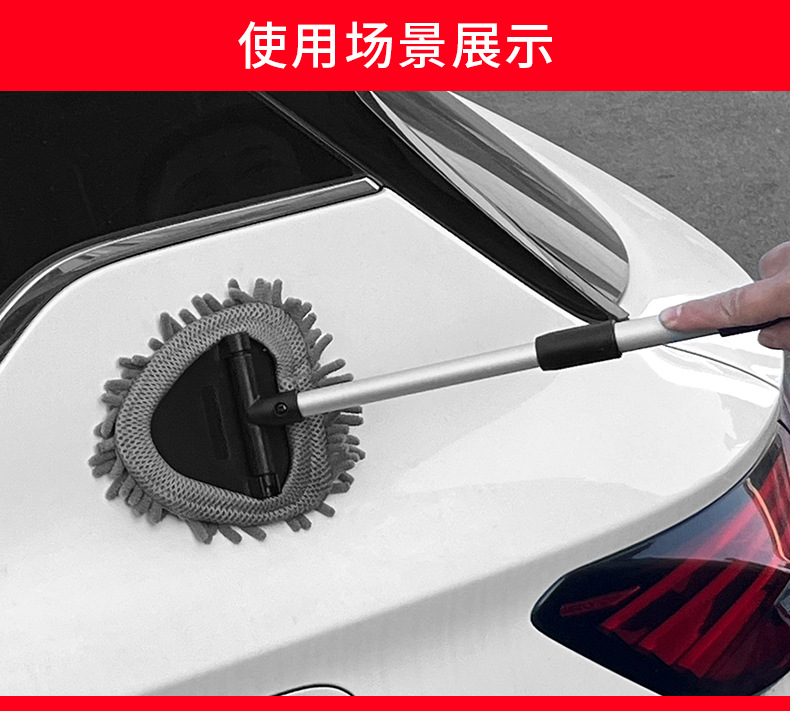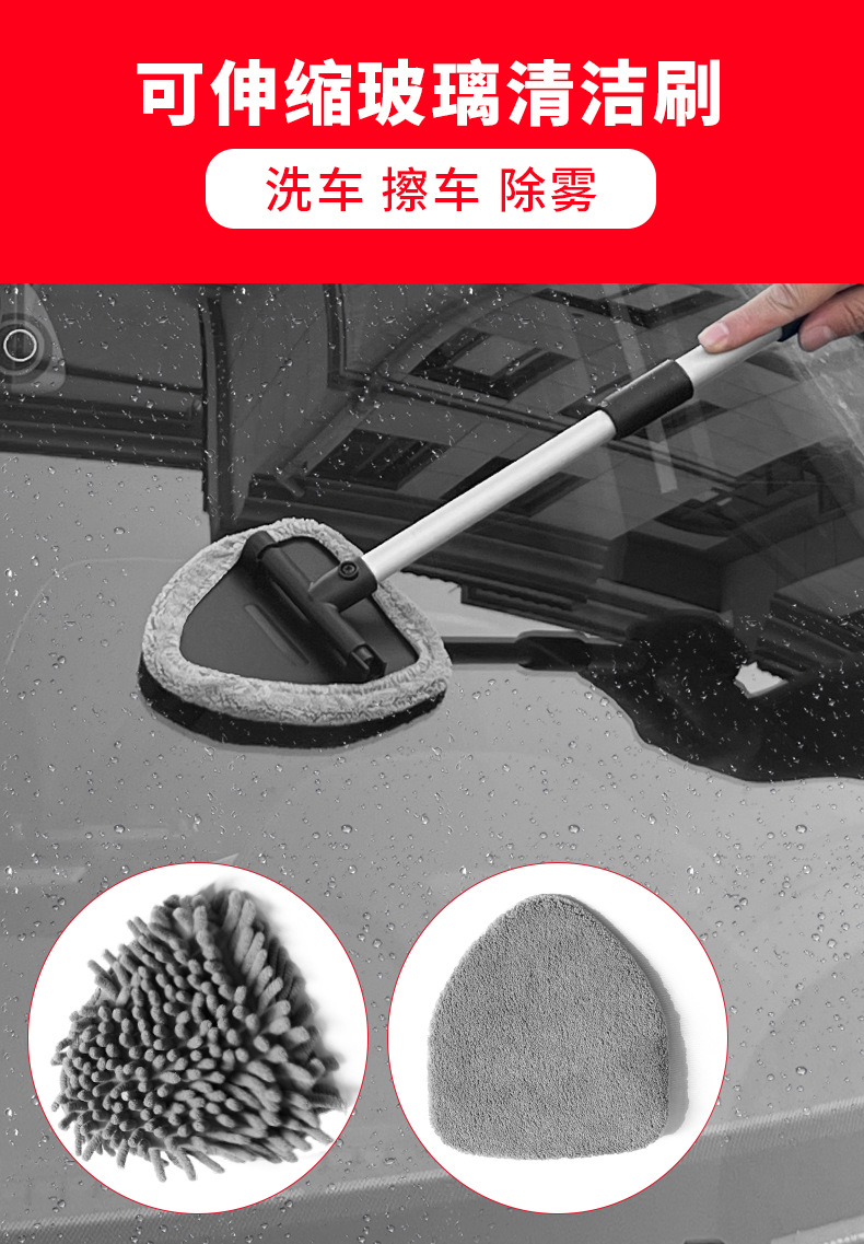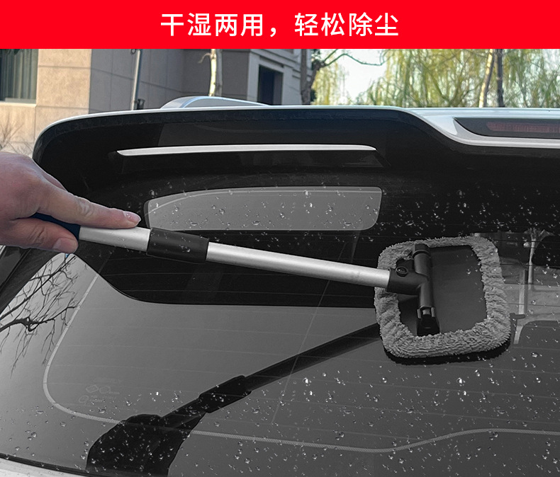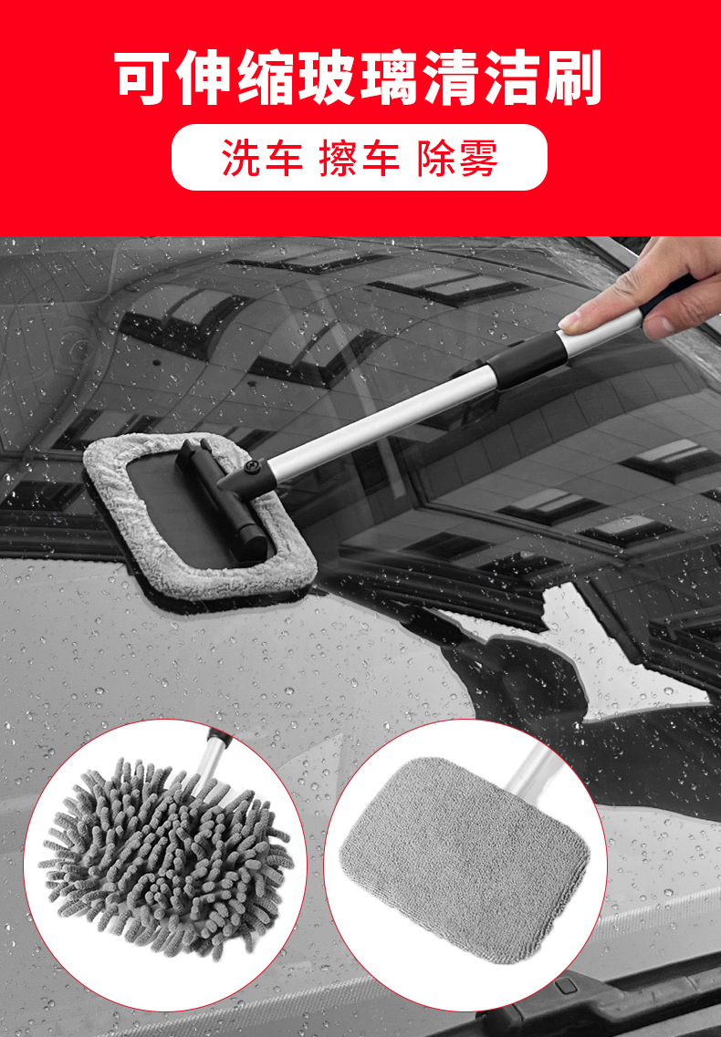 1,可伸缩铝合金杆,清洁范围大,可轻松擦洗车顶;