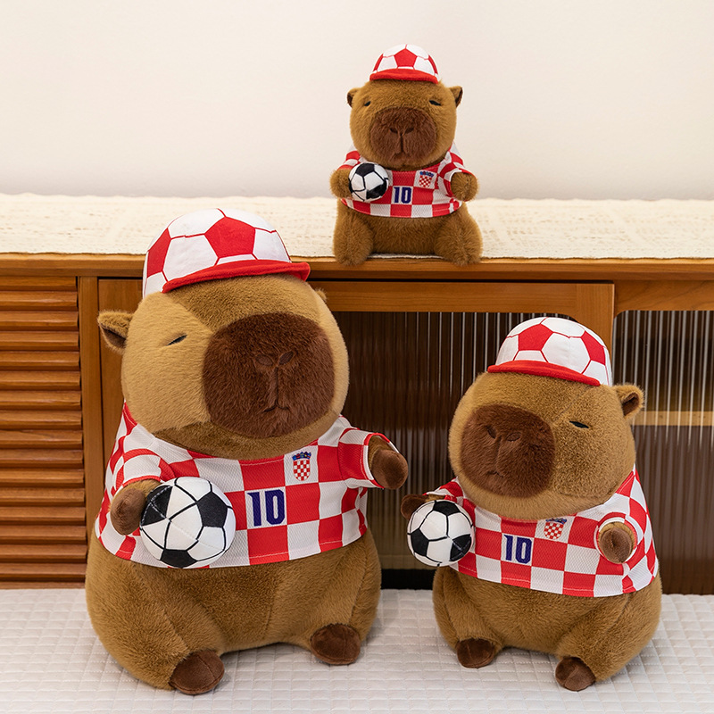 跨境新品足球宝贝卡皮巴拉毛绒玩具公仔儿童礼物玩偶水豚抱枕娃娃