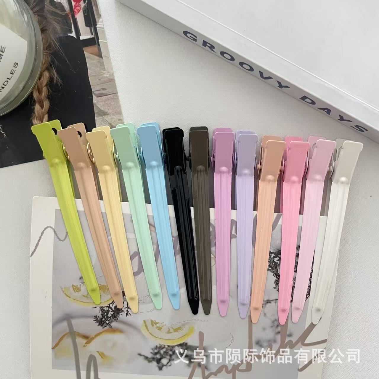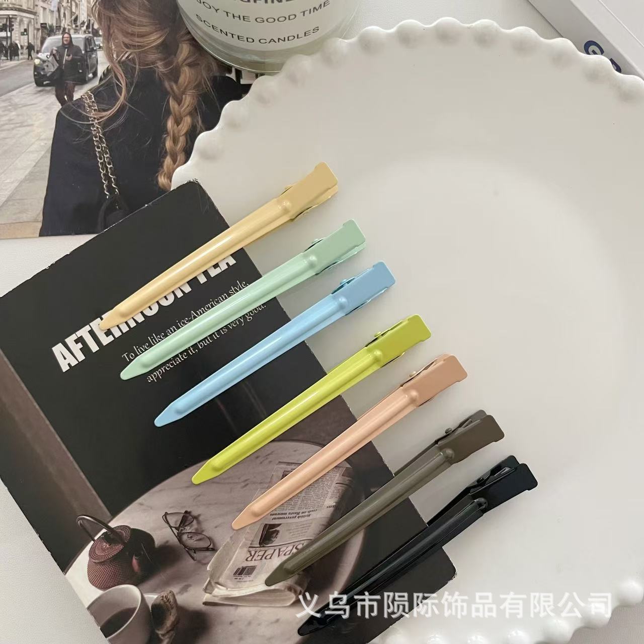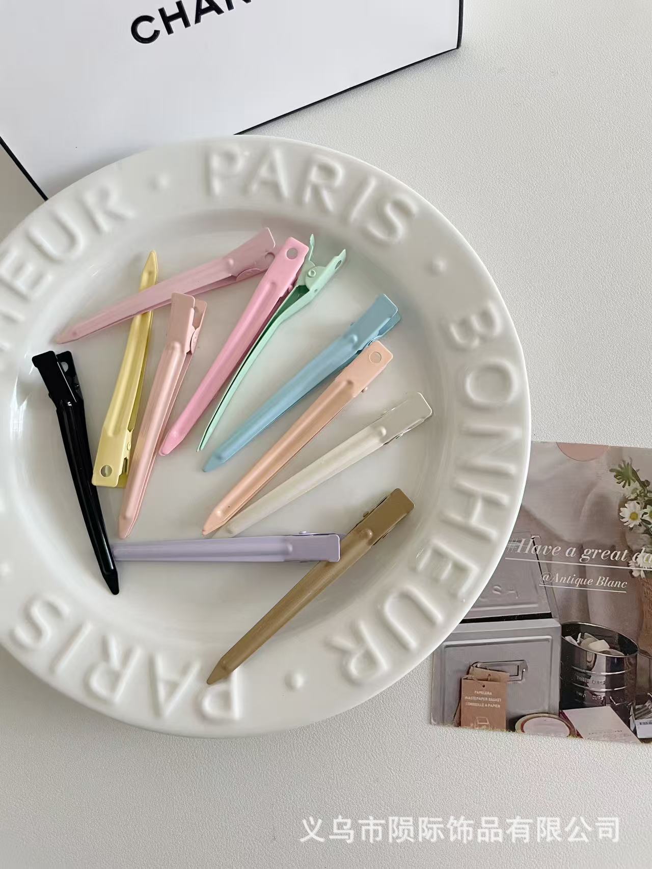 여성용 대형 마카롱 컬러 메탈 덕빌 클립, 이마 측면 앞머리 클립, 뾰족한 입 메이크업 및 세안용 흔적 없는 클립