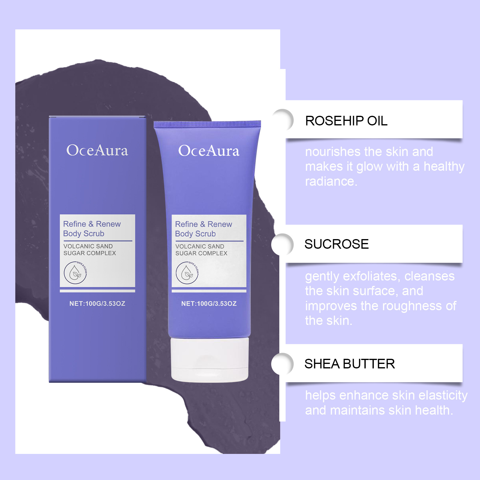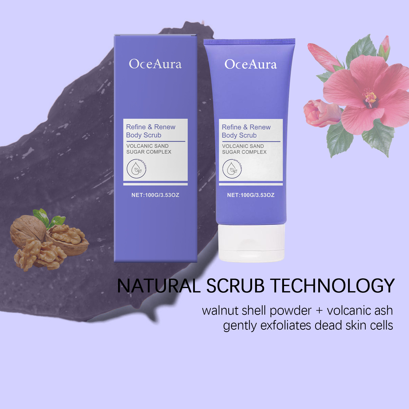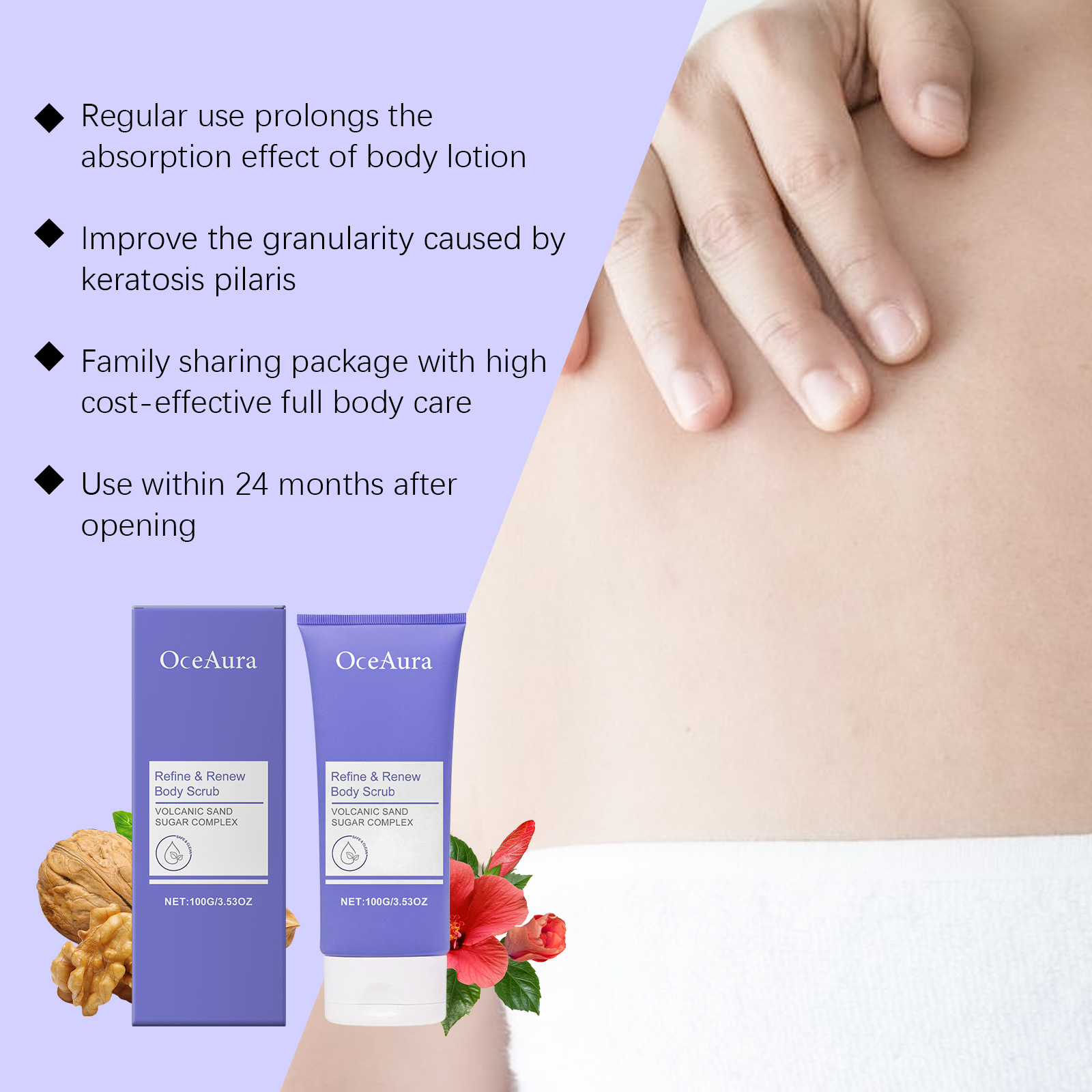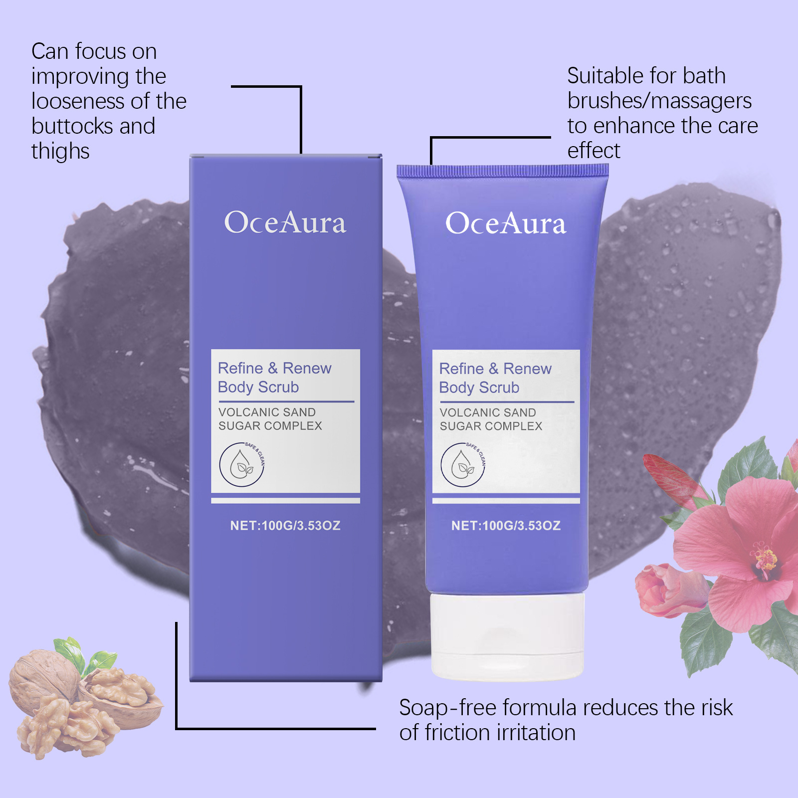 OceAura 바디 스크럽 부드럽게 클렌징 바디 스킨 보습 및 부드러운 피부 클렌징 스크럽