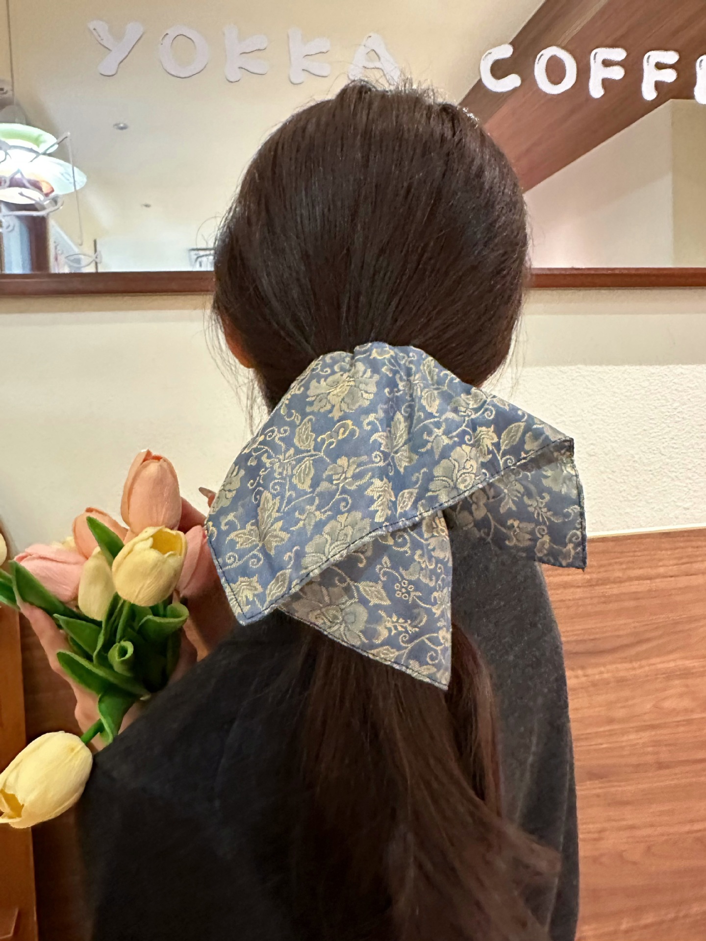새로운 한국 스타일 우아한 유화 스타일 꽃 광장 스카프 게으른 스타일 대형 장내 헤어 링 볼 헤드 로프 새로운 헤어 액세서리스토어 가기