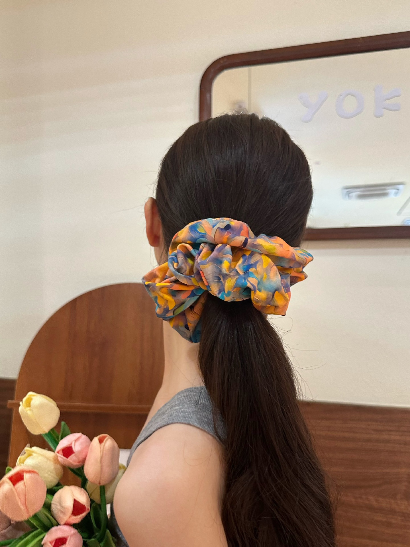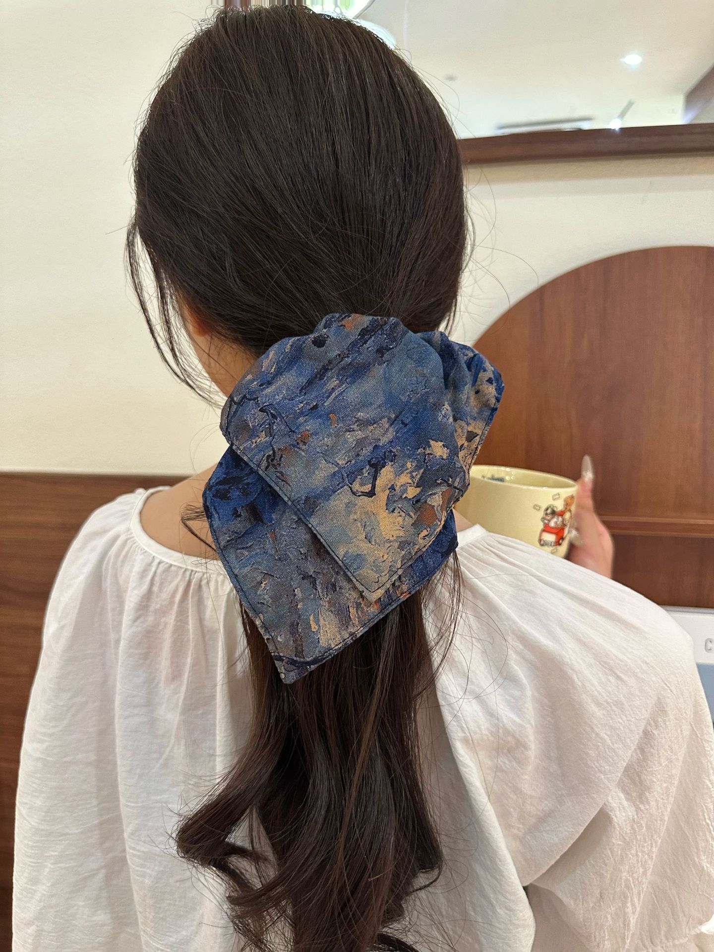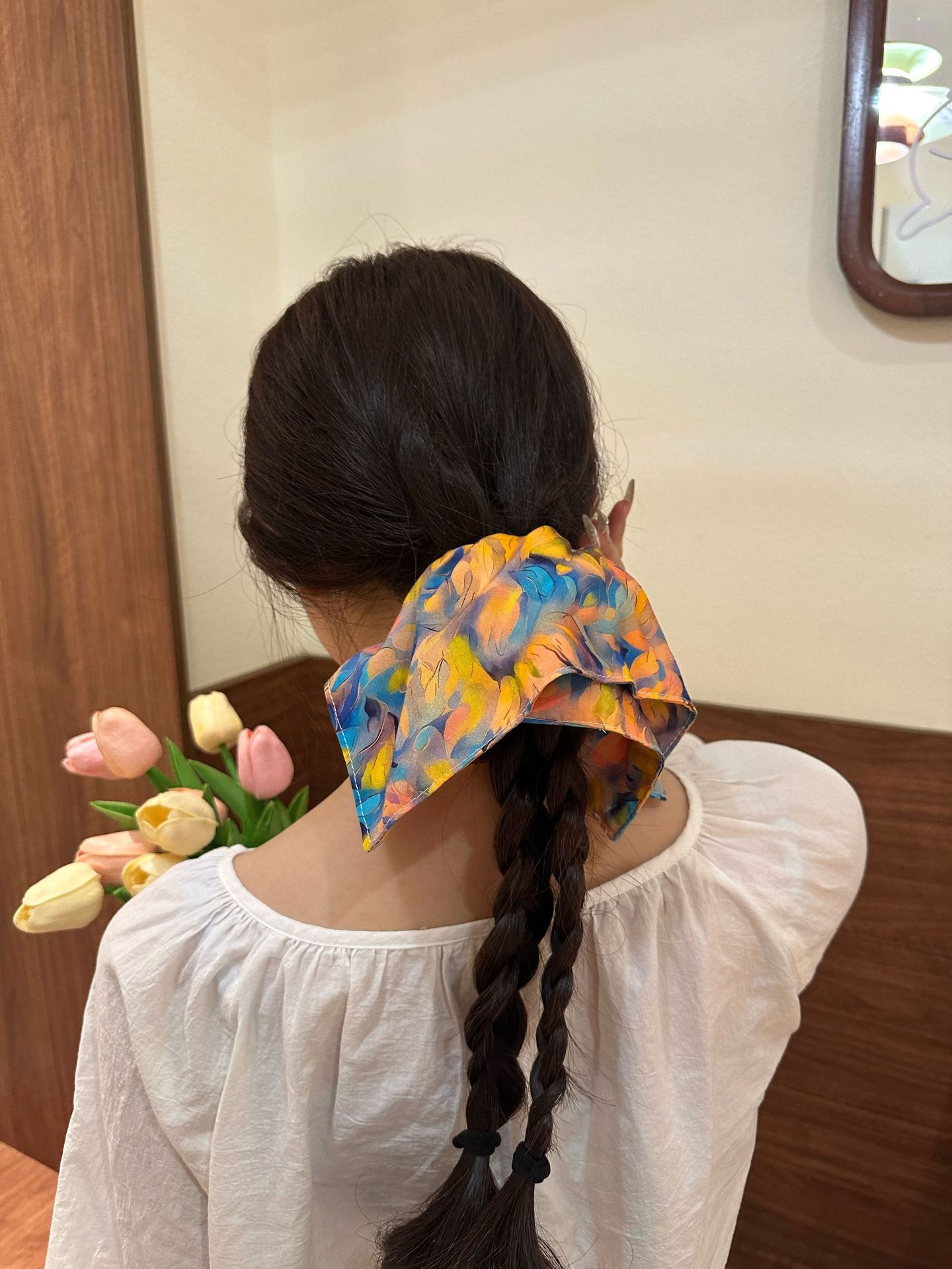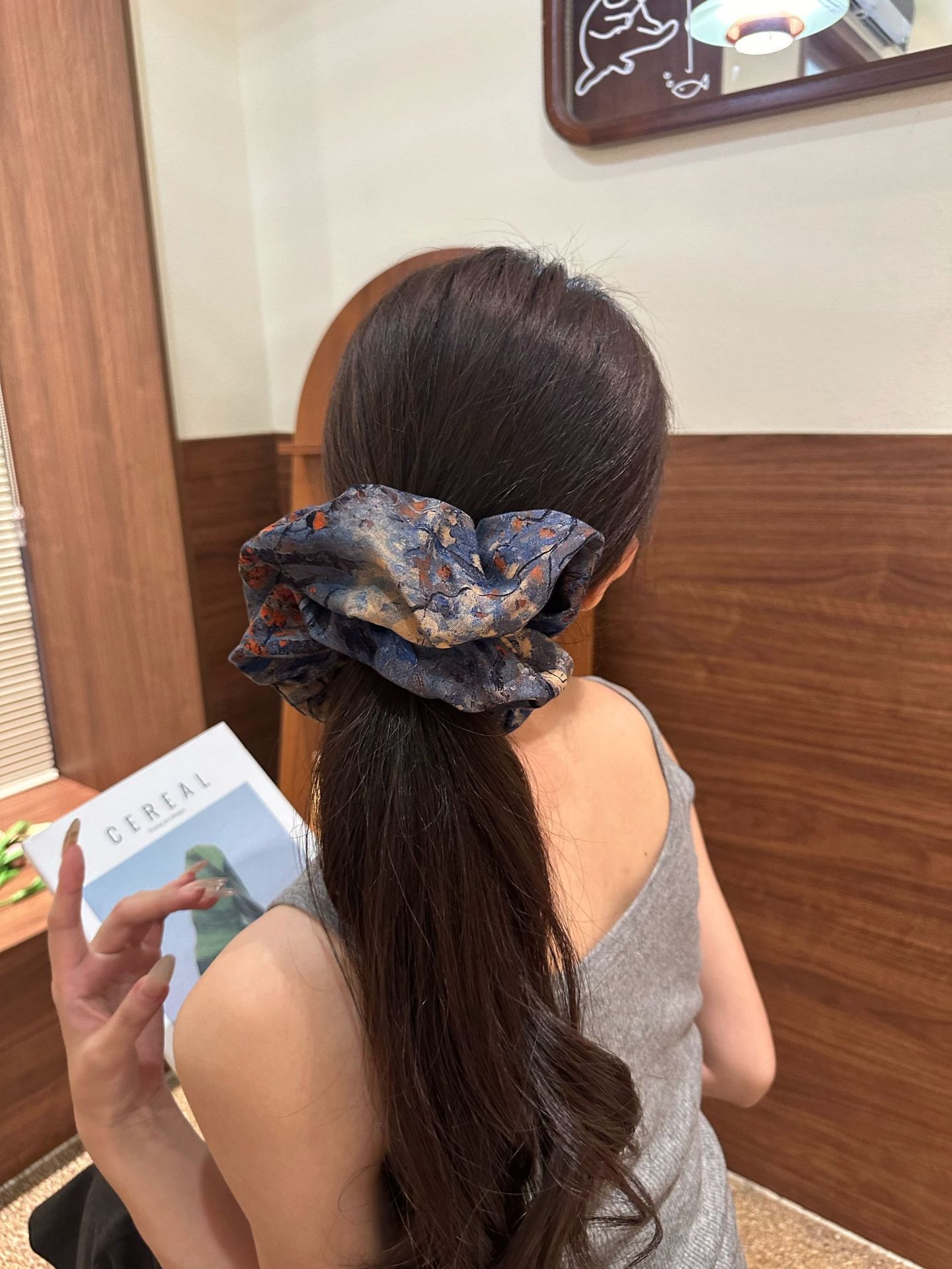 새로운 한국 스타일 우아한 유화 스타일 꽃 광장 스카프 게으른 스타일 대형 장내 헤어 링 볼 헤드 로프 새로운 헤어 액세서리