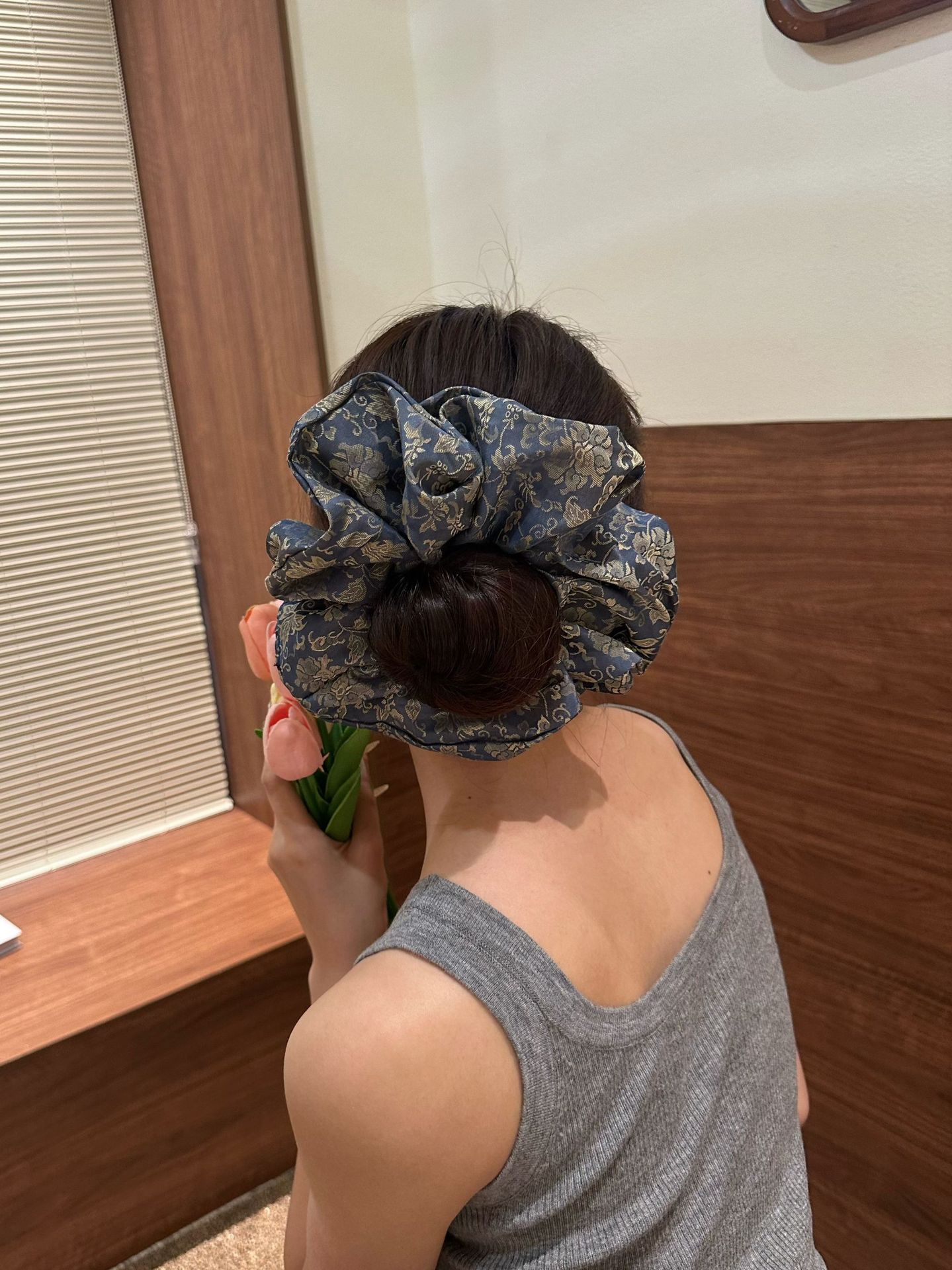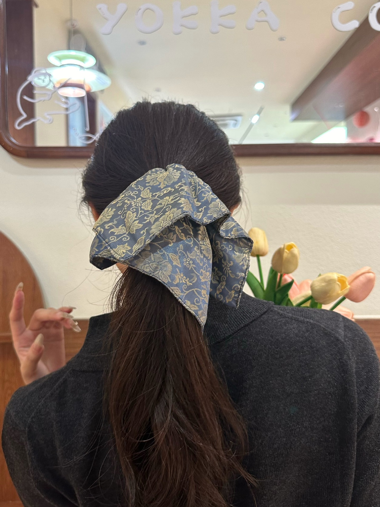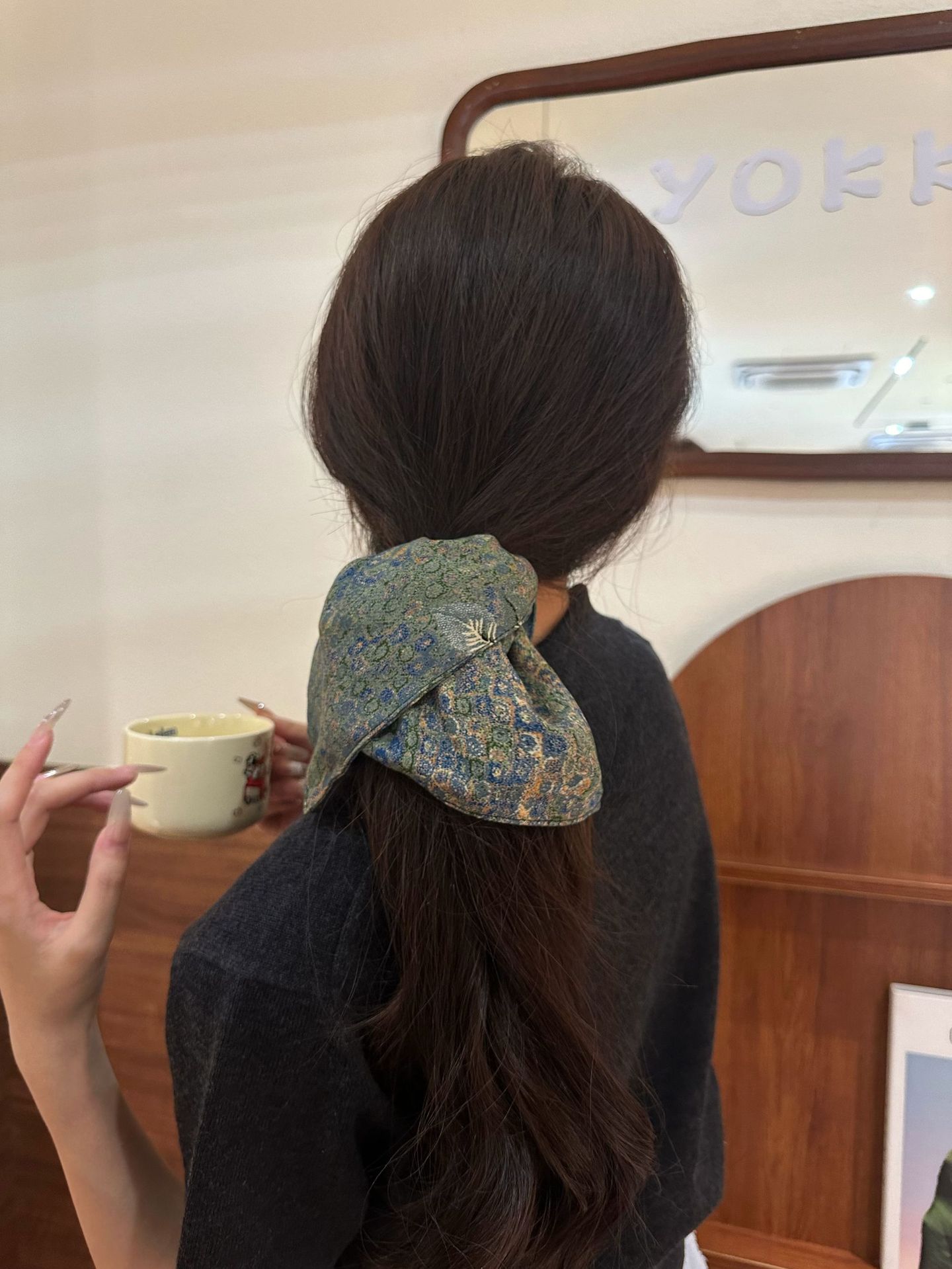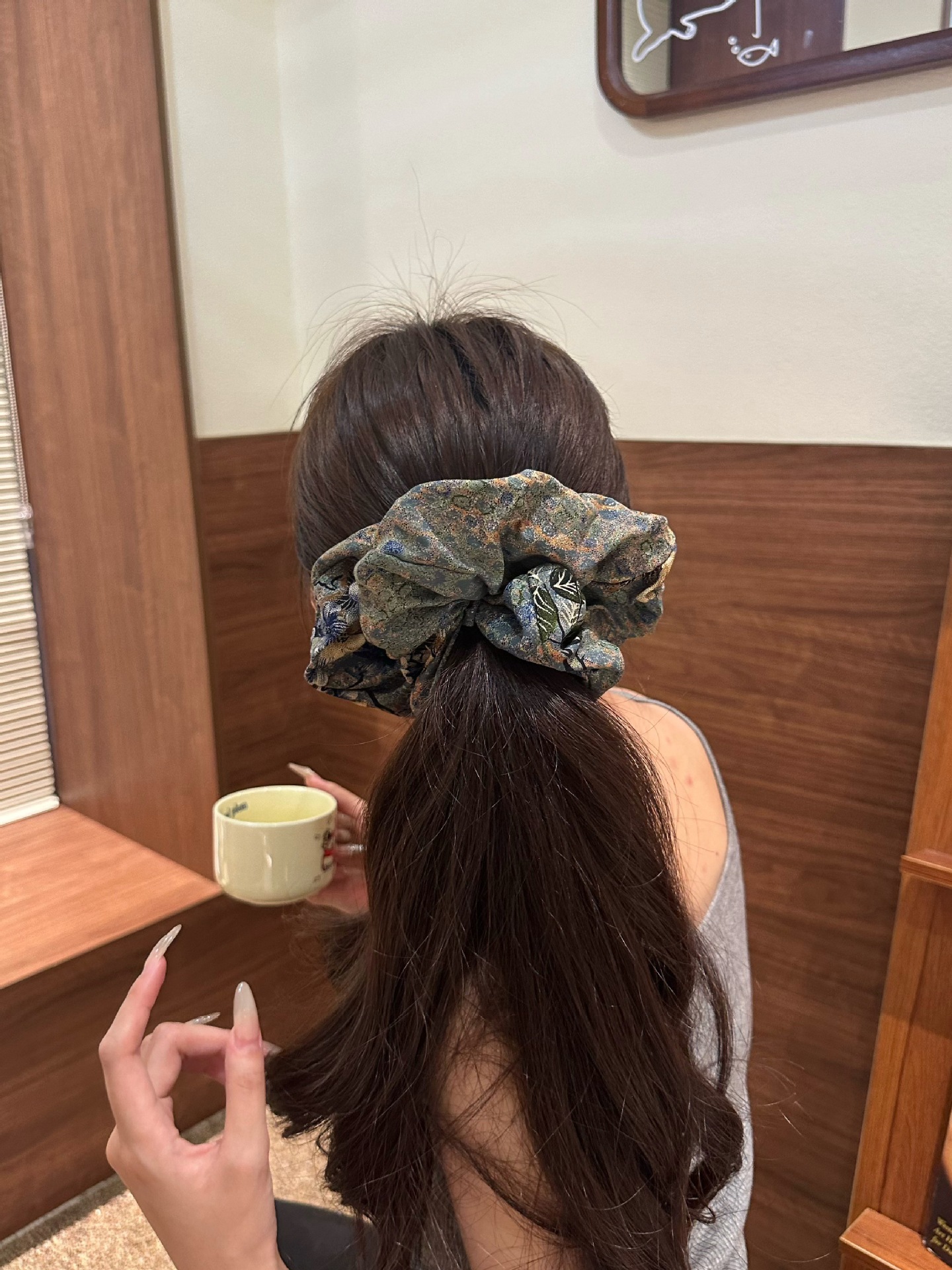 새로운 한국 스타일 우아한 유화 스타일 꽃 광장 스카프 게으른 스타일 대형 장내 헤어 링 볼 헤드 로프 새로운 헤어 액세서리