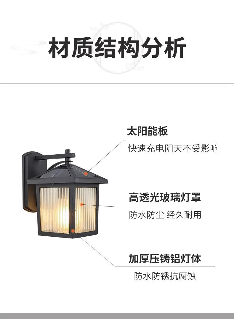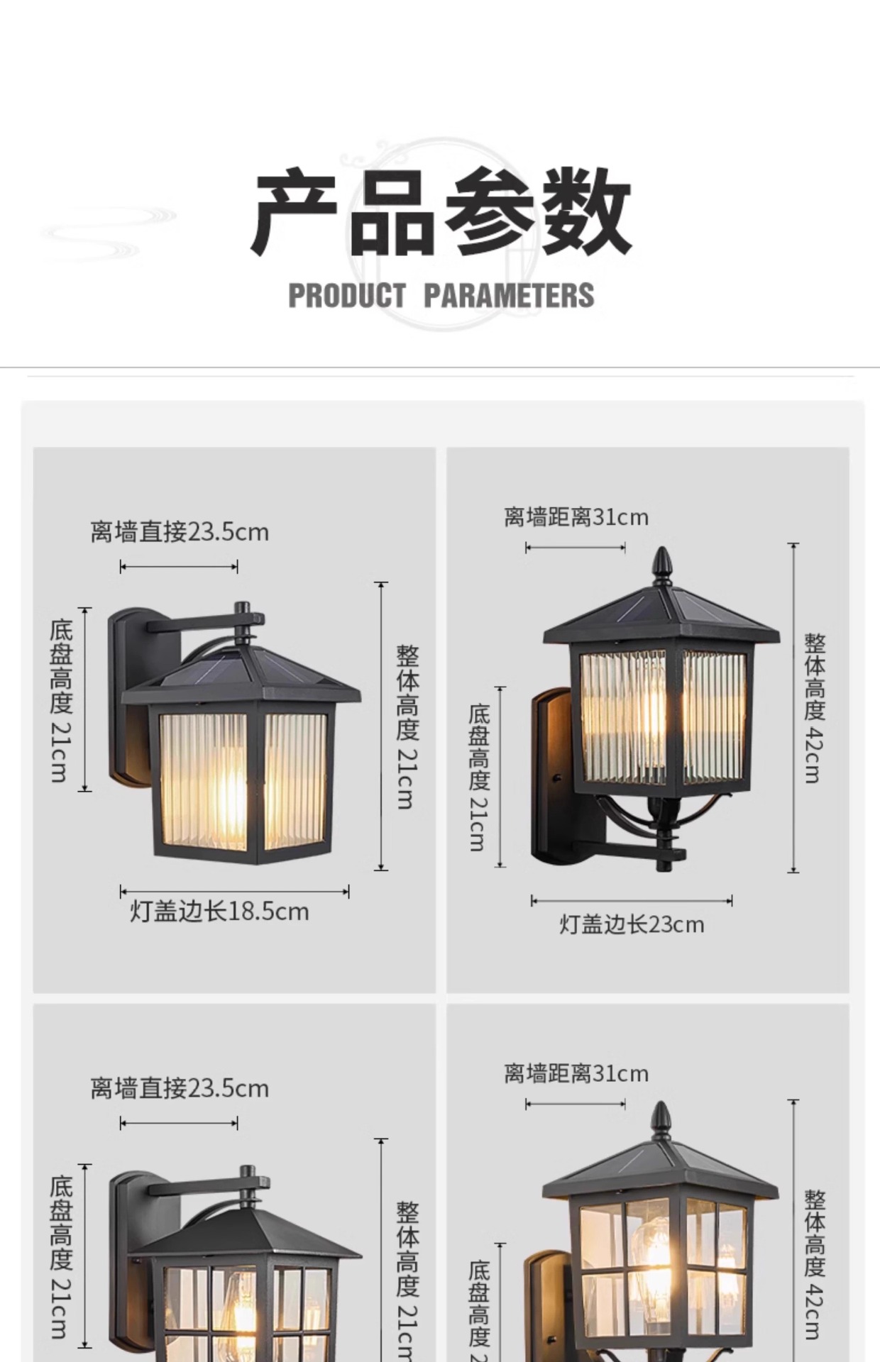 야외 방수 벽 램프 태양 정원 램프 유럽 스타일 빌라 야외 발코니 외벽 정원 문 테라스 벽 램프