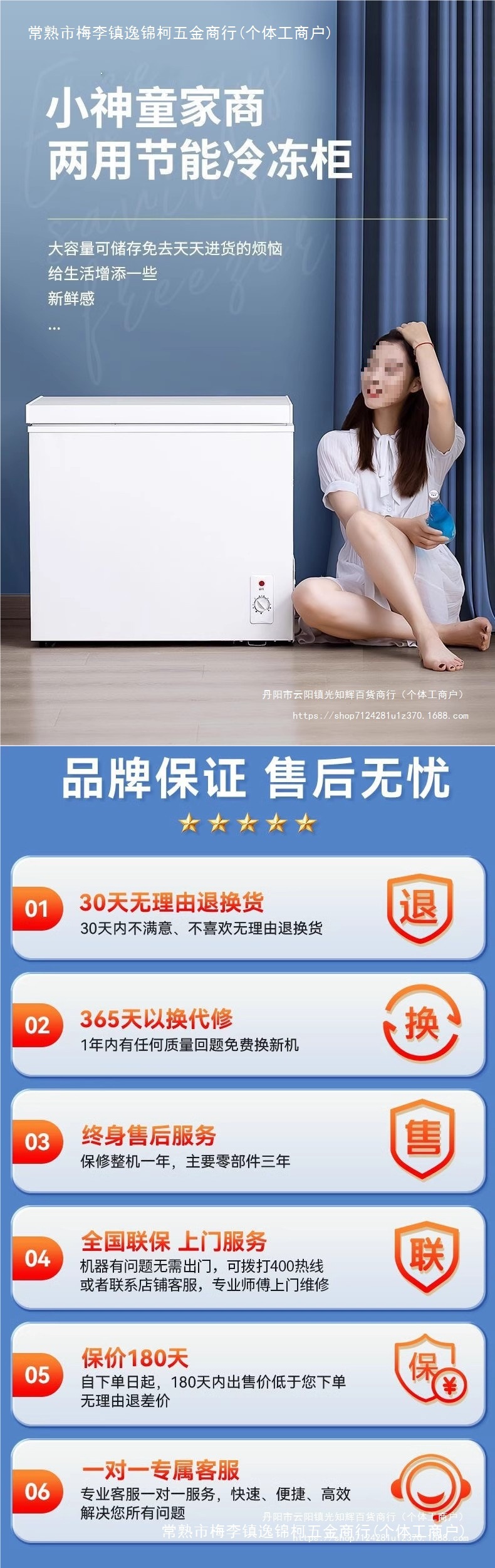 바다 158L 프로스트 무료 냉동고 작은 가정용 에너지 절약 완전 냉동 상업용 대용량 조용한 냉동고스토어 가기