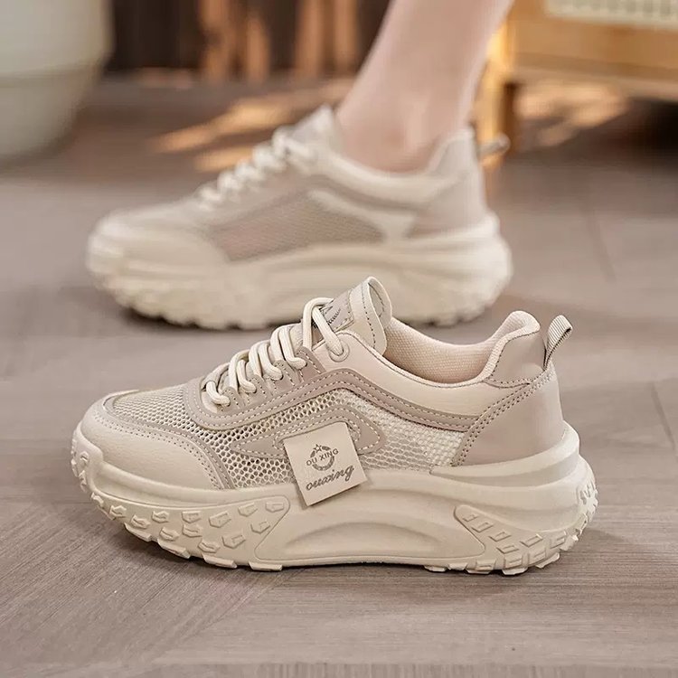 여성 신발 여름 2025 새로운 단일 메쉬 통기성 메쉬 스포츠 메쉬 신발 여성 여름 경량 높이 증가 아빠 신발스토어 가기