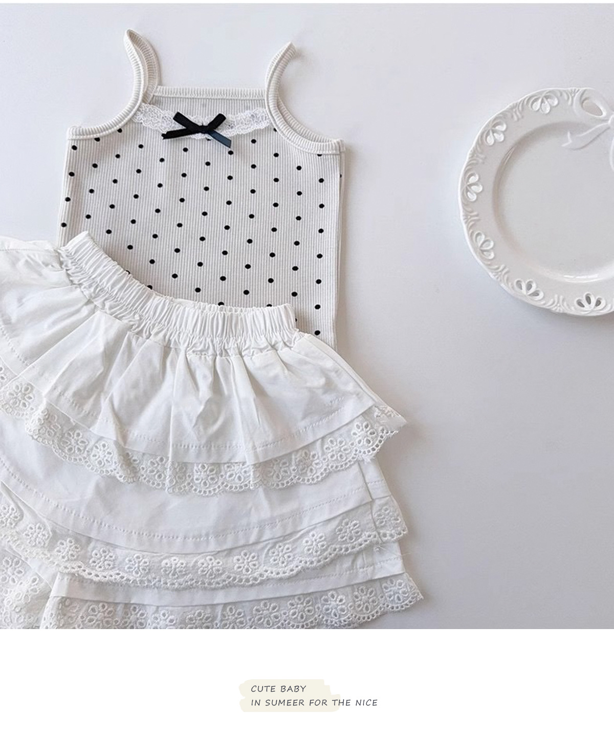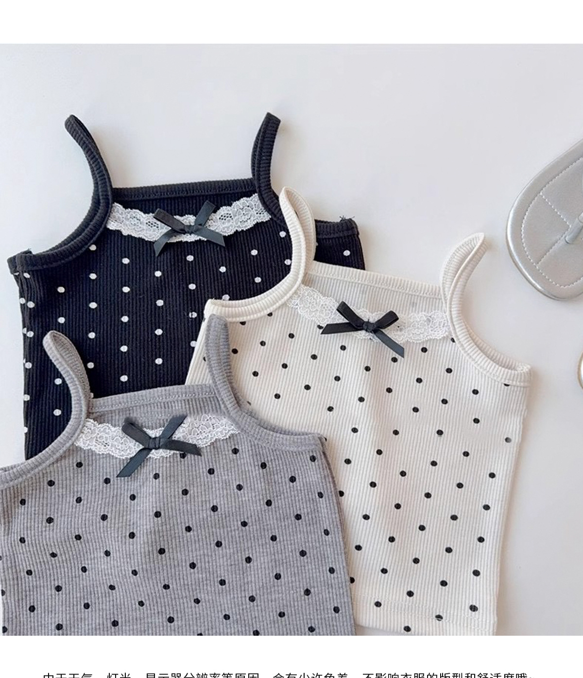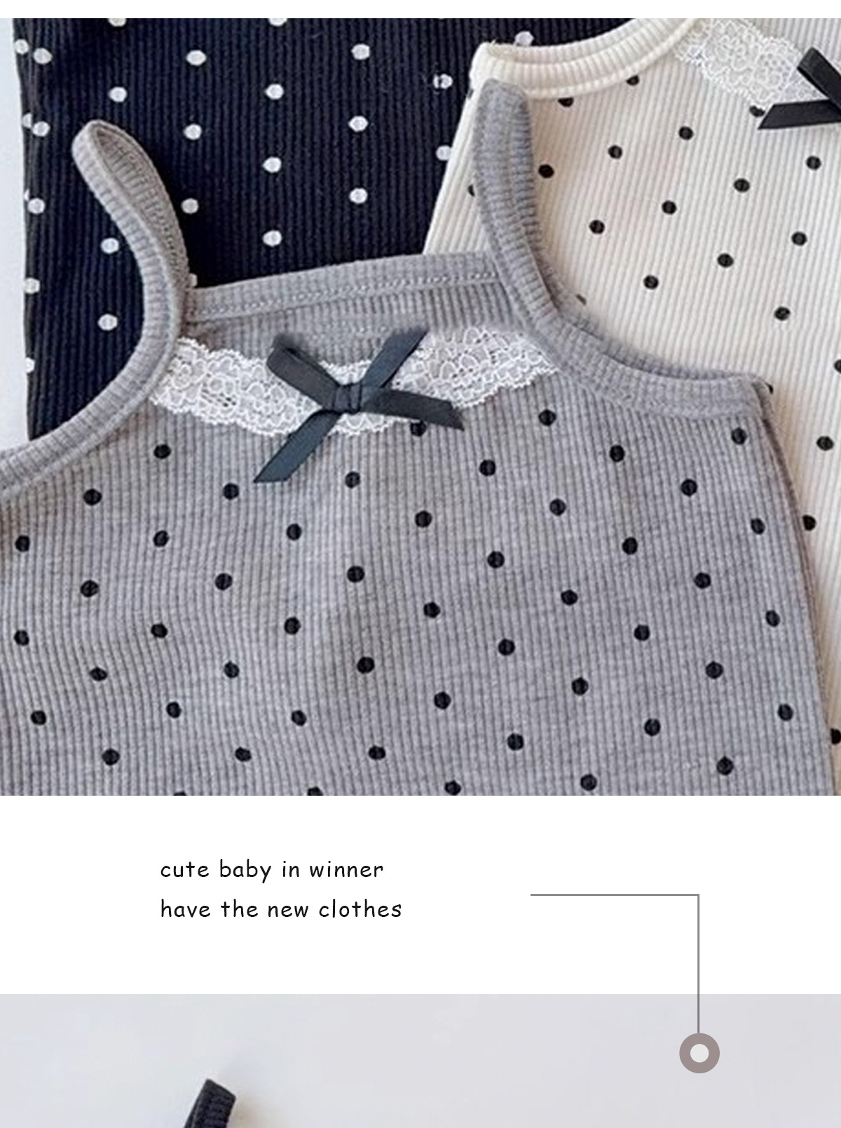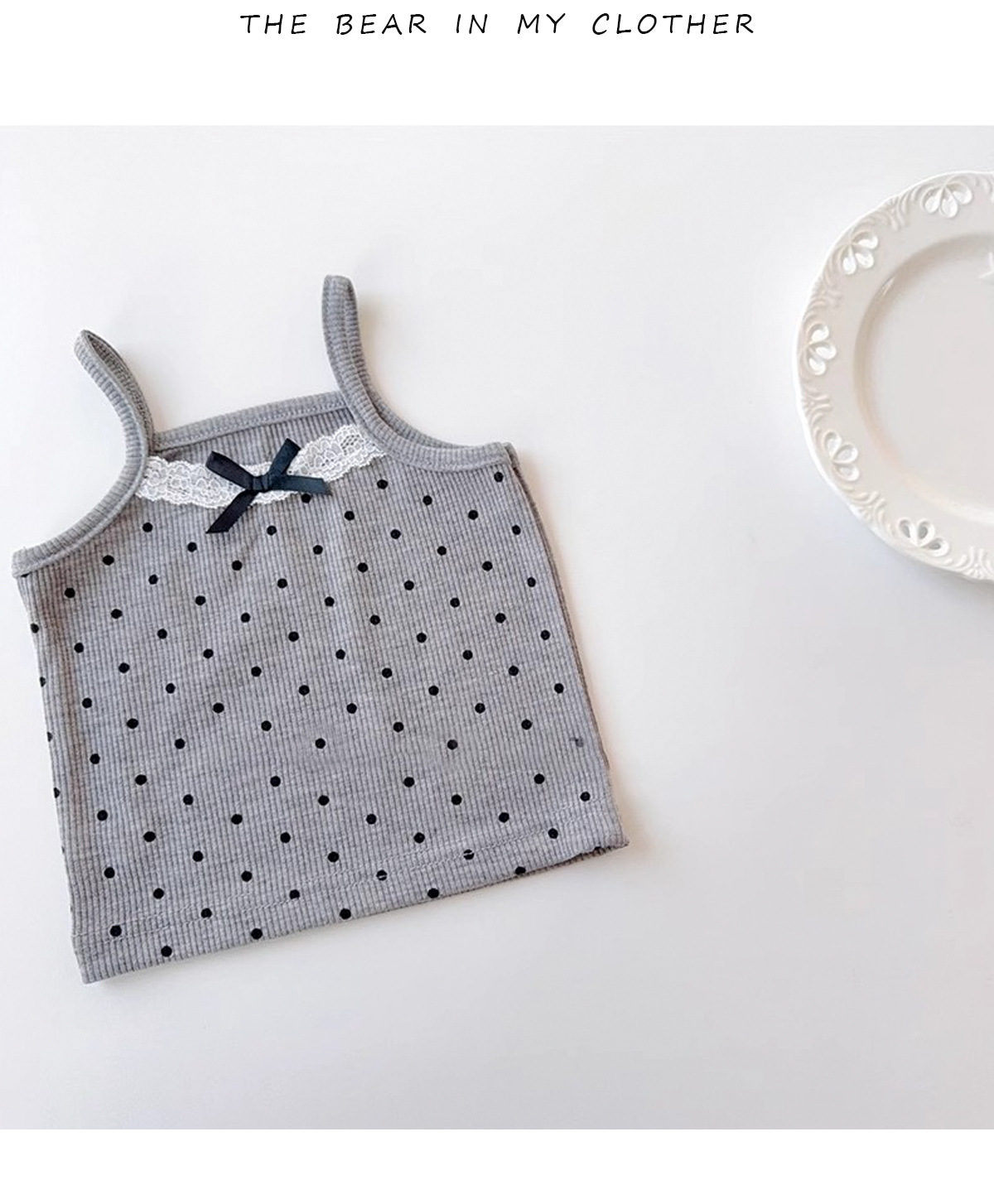 한국 스타일 새 여자 레이스 보우 서스펜더 여름 핫 소녀 귀여운 폴카 도트 조끼 짧은 겉옷