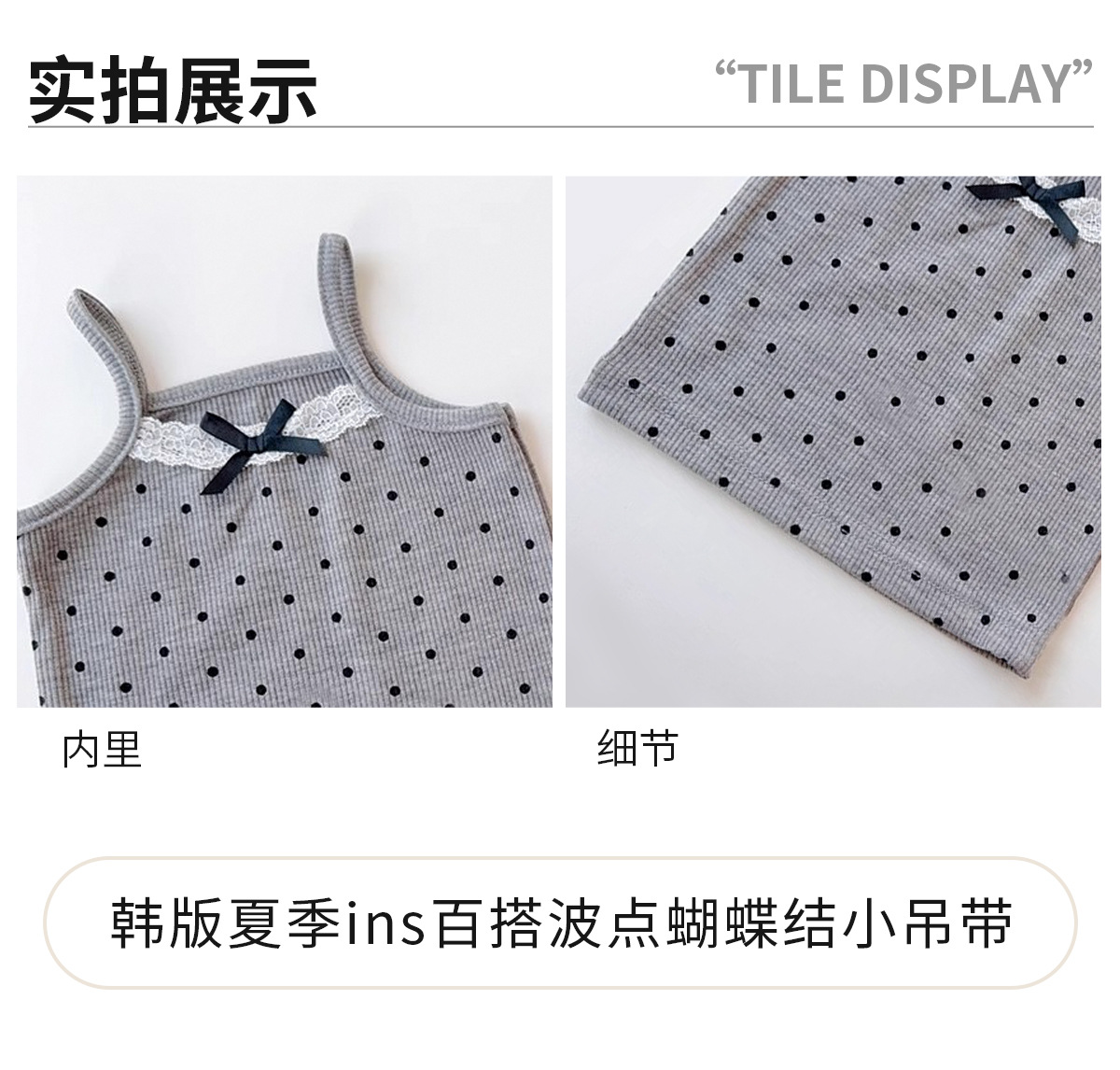 한국 스타일 새 여자 레이스 보우 서스펜더 여름 핫 소녀 귀여운 폴카 도트 조끼 짧은 겉옷스토어 가기