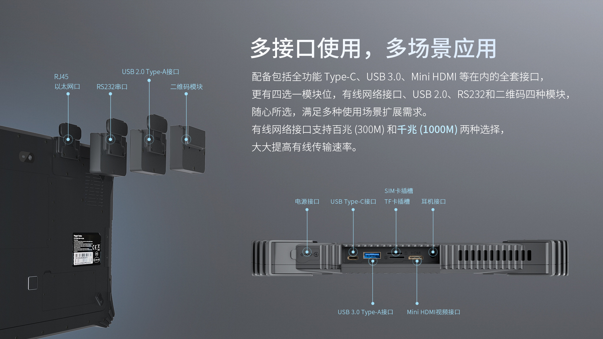 I/O接口: | USB 3.0 Type-A * 1,USB Type-C * 1, Sim卡 * 1,tf卡 * 1支持128G, HDMI 1.4a * 1, 12针Pogo针 * 1, Φ3.5mm毫米标准耳机插孔 * 1, Φ5.5毫米直流电源连接器 * 1 | |
