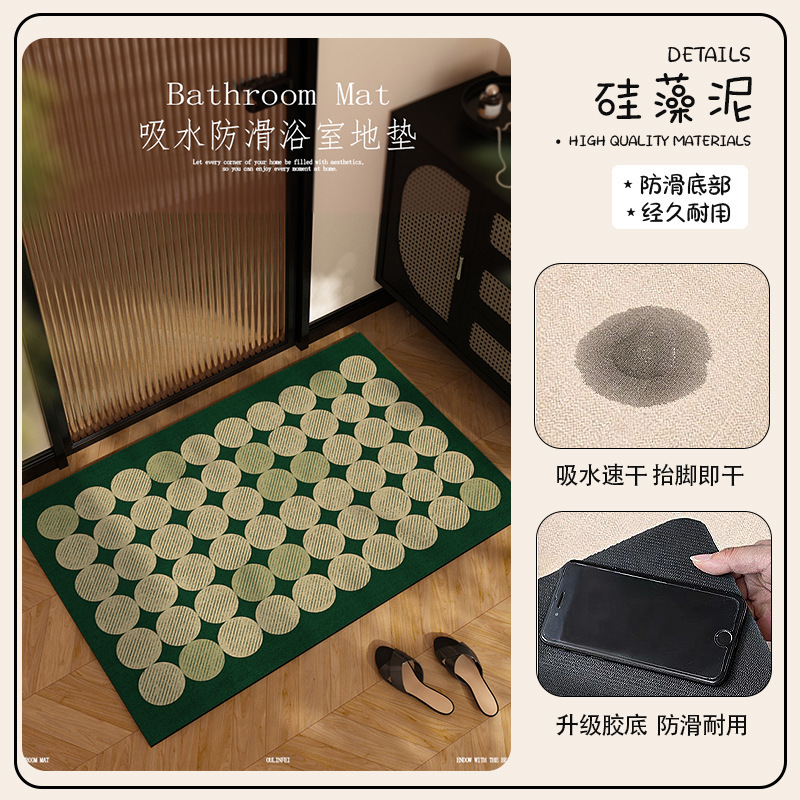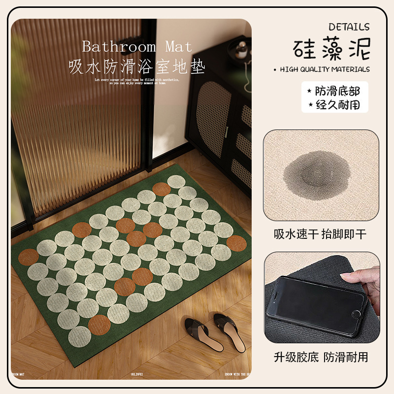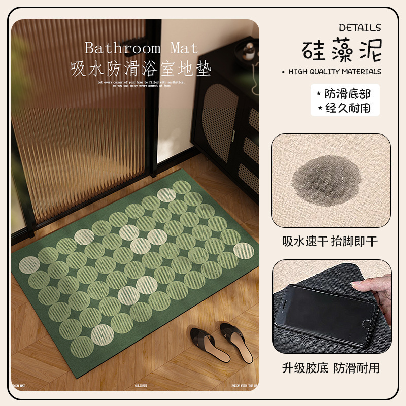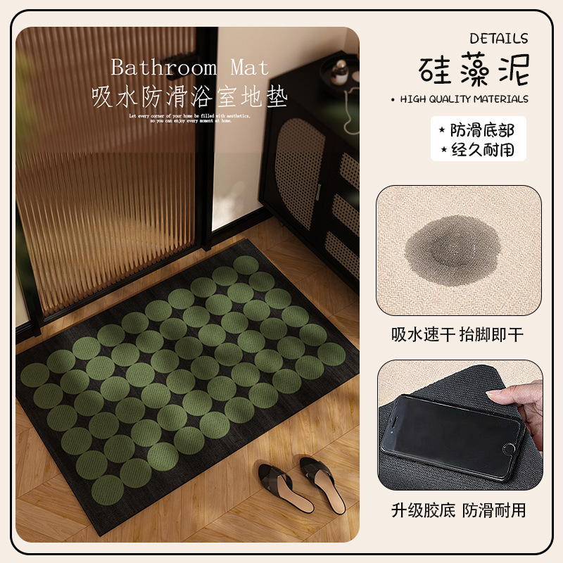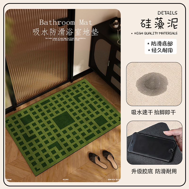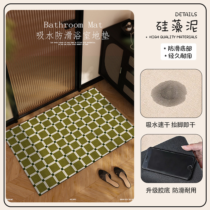복고풍 규조토 진흙 발 매트, 욕실 문 매트, 고급 녹색 화장실 문, 흡수성, 미끄럼 방지 및 먼지 방지스토어 가기