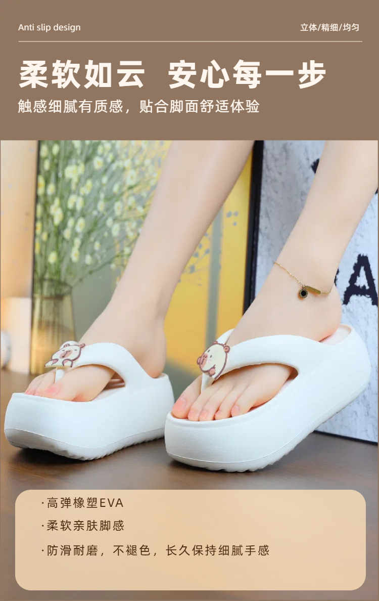 Stomp Feeling 두꺼운 밑창 플립 플롭 여성 여름 2025 새로운 미끄럼 방지 해변 신발 플립 플롭 여성 아우터웨어스토어 가기
