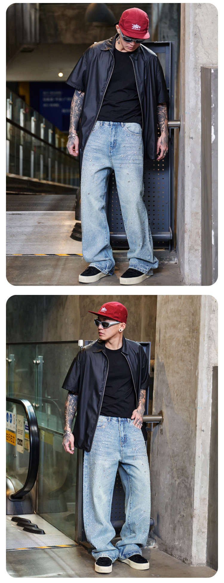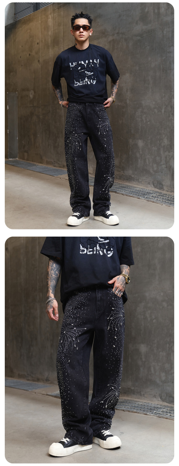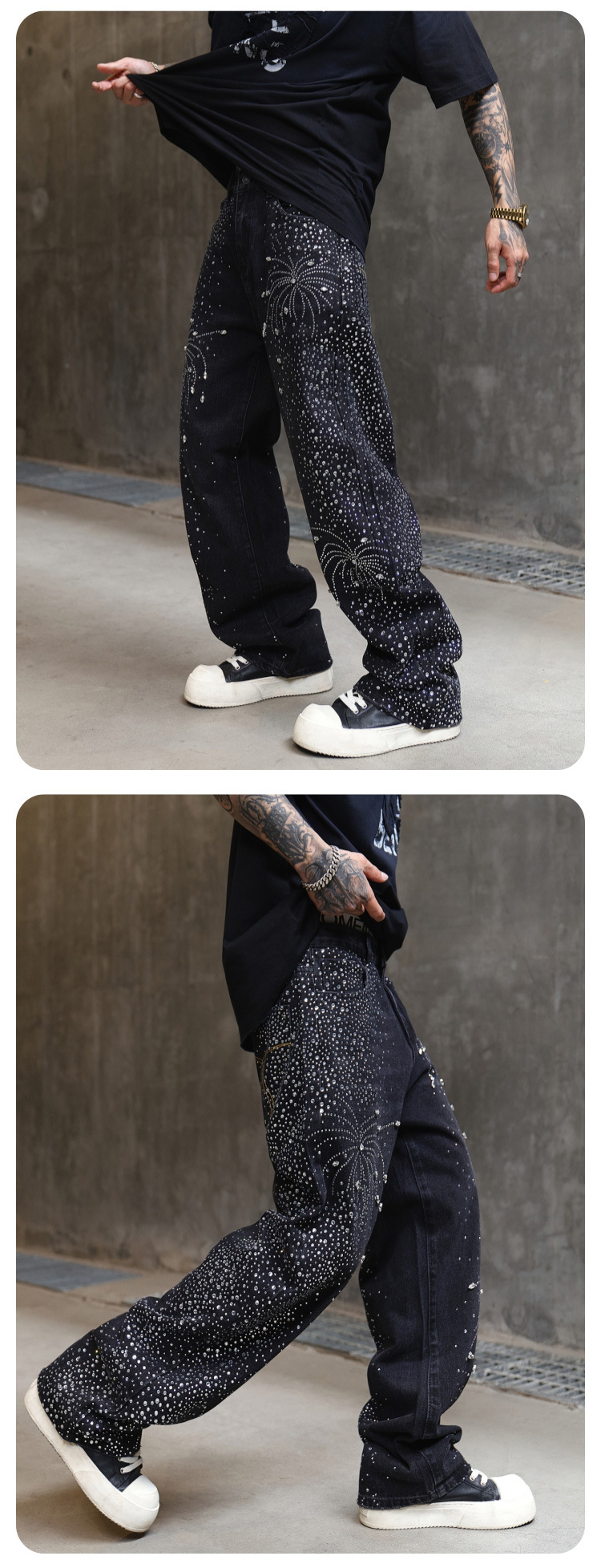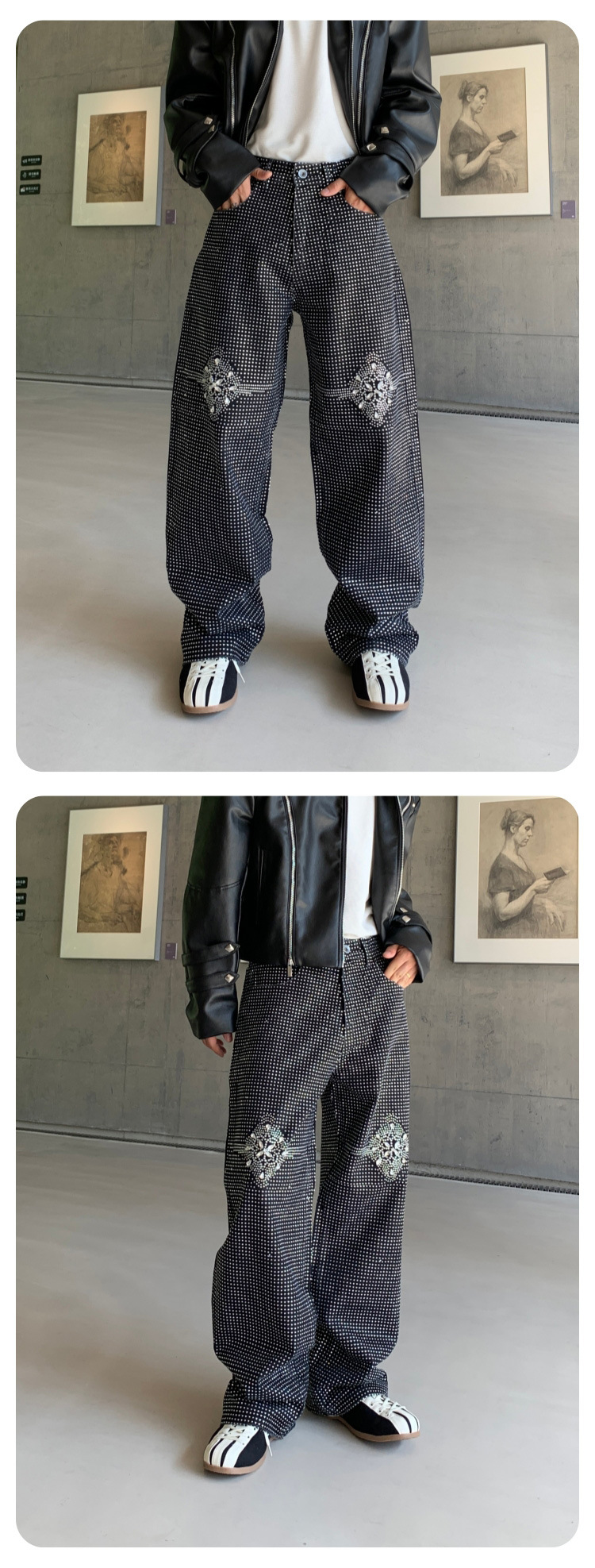 남성용 아메리칸 하이 스트리트 풀 다이아몬드 디자인 청바지, 새로운 트렌디 브랜드 루즈 스트레이트 워싱 비즈 남성 캐주얼 바지스토어 가기