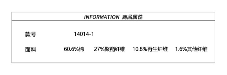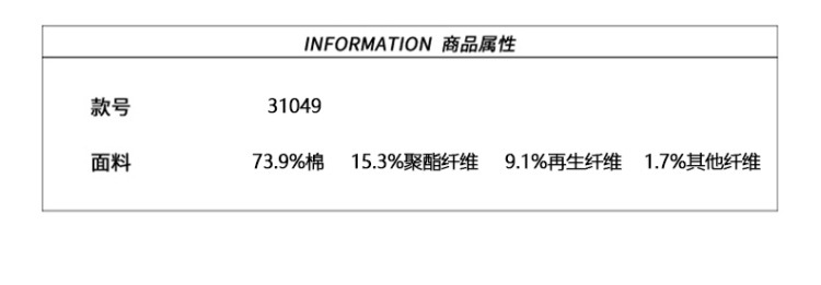 面料成分:83%棉17%聚酯纤维
