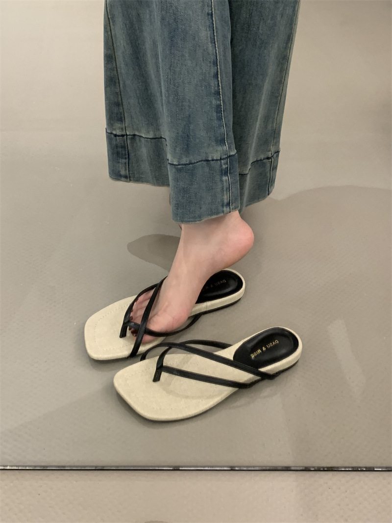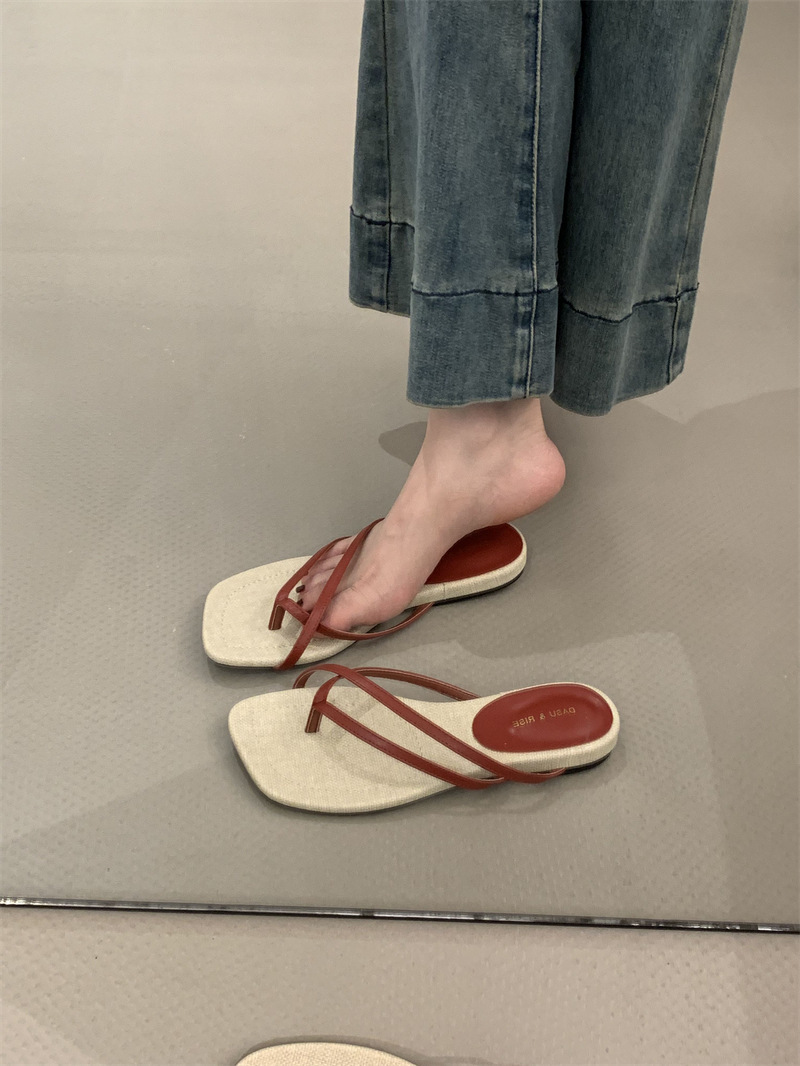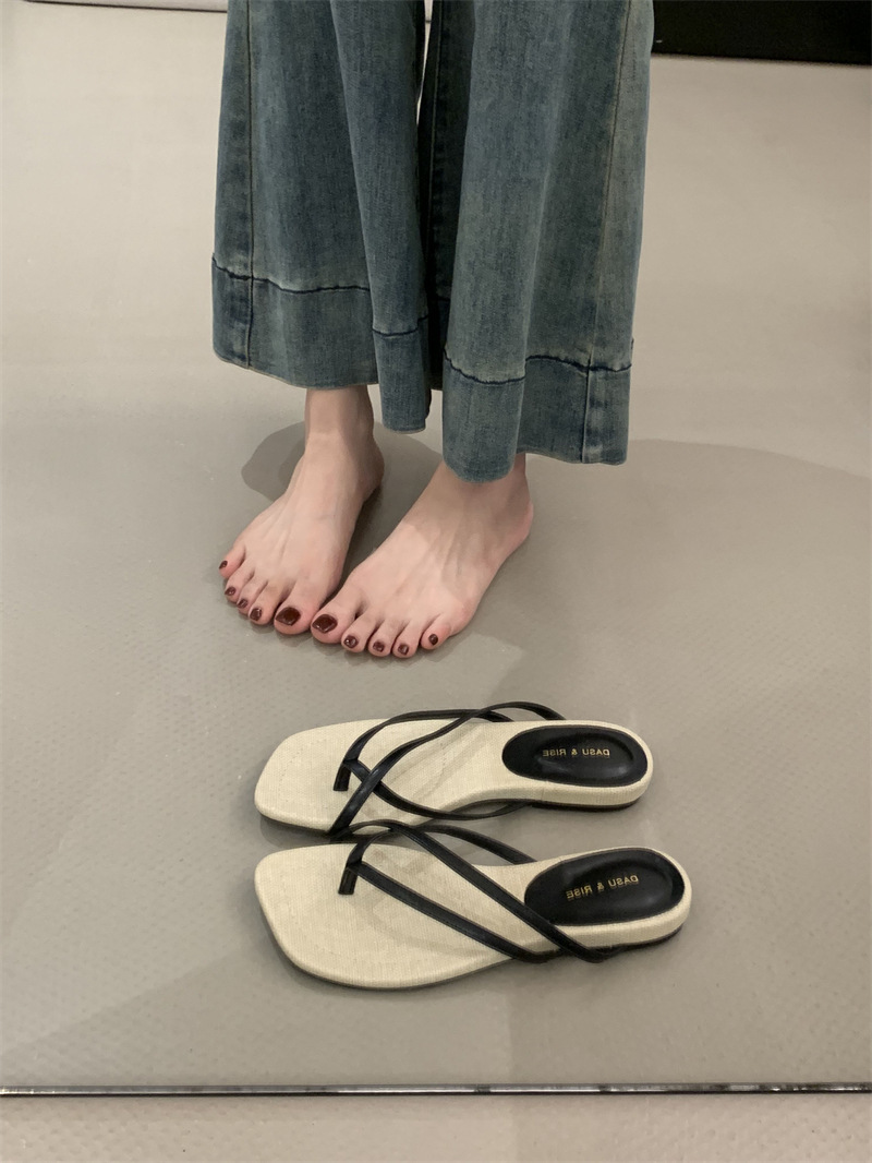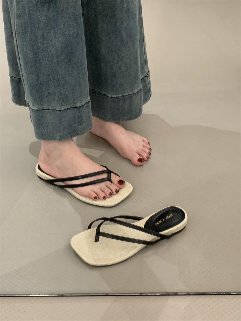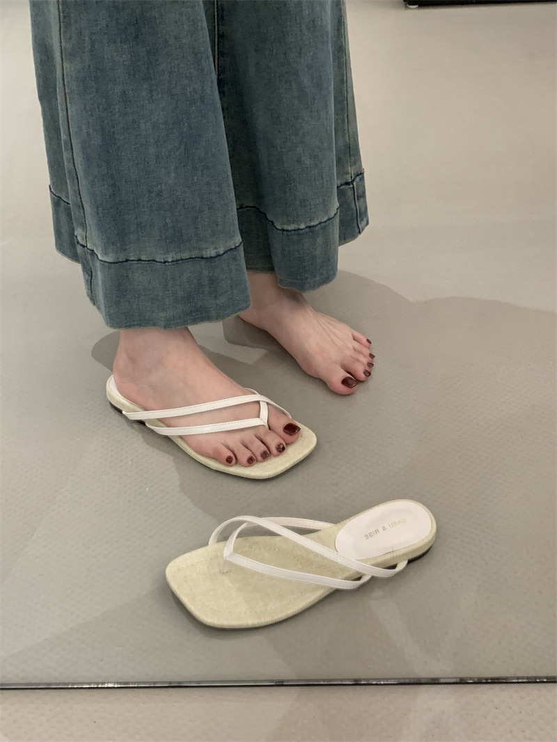 여성용 플랫 슬리퍼 2025 여름 새로운 틈새 디자인 캐주얼 해변 휴가 슬리퍼