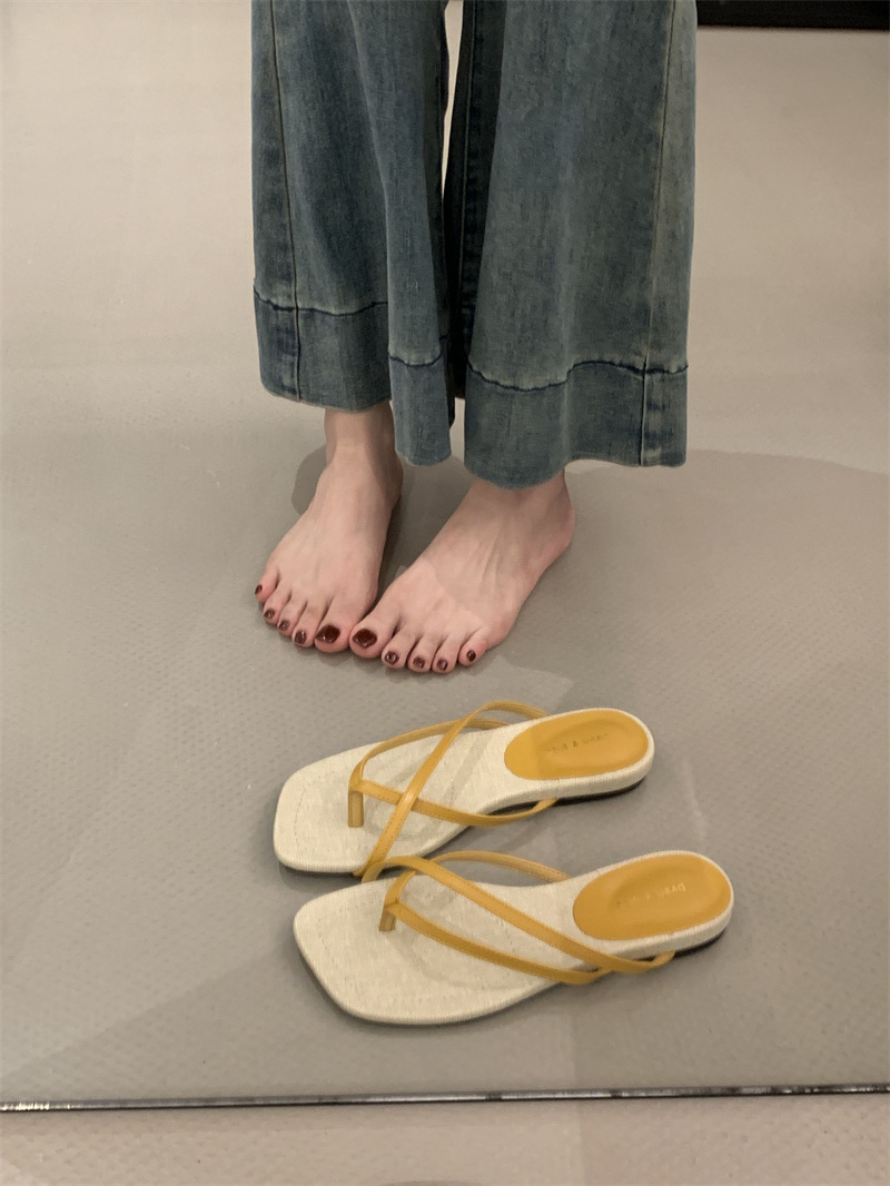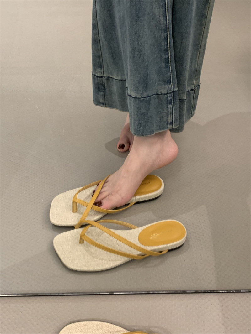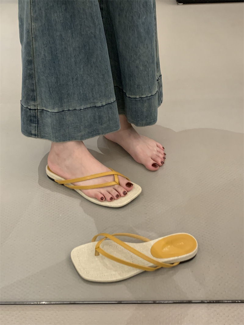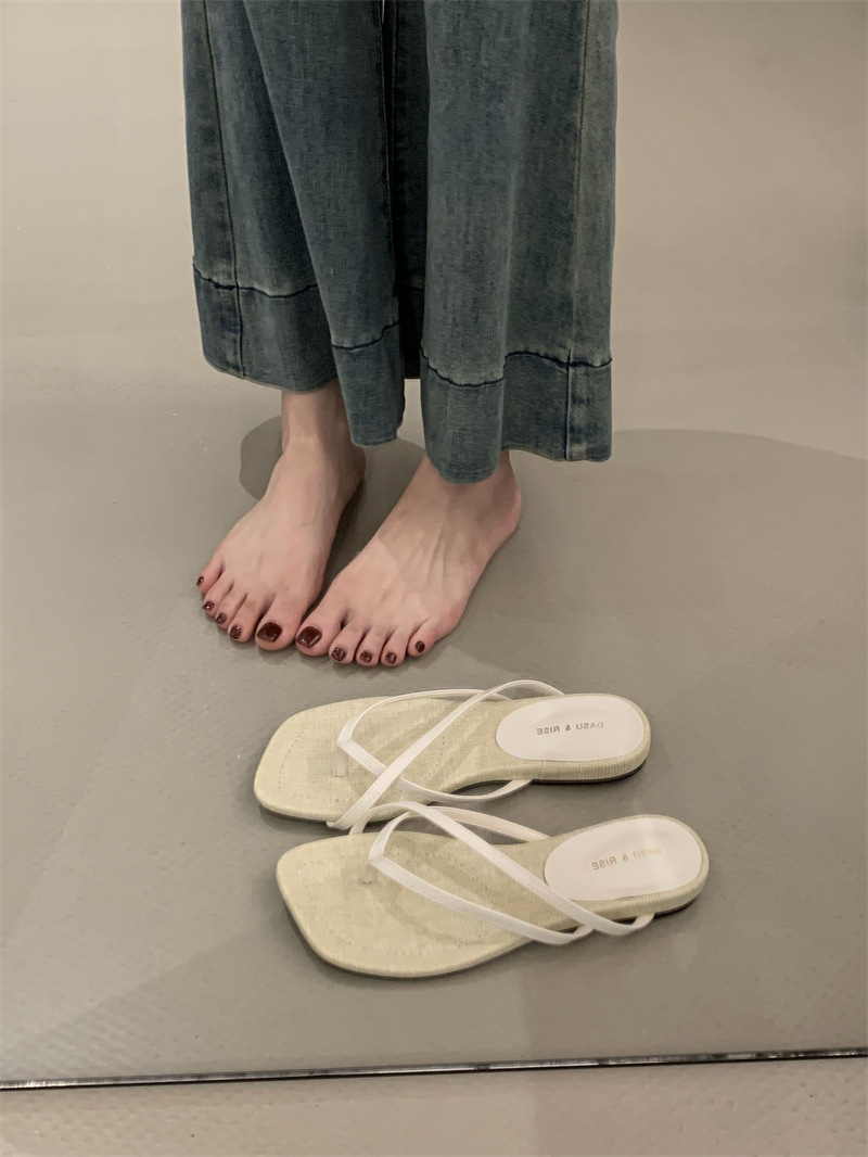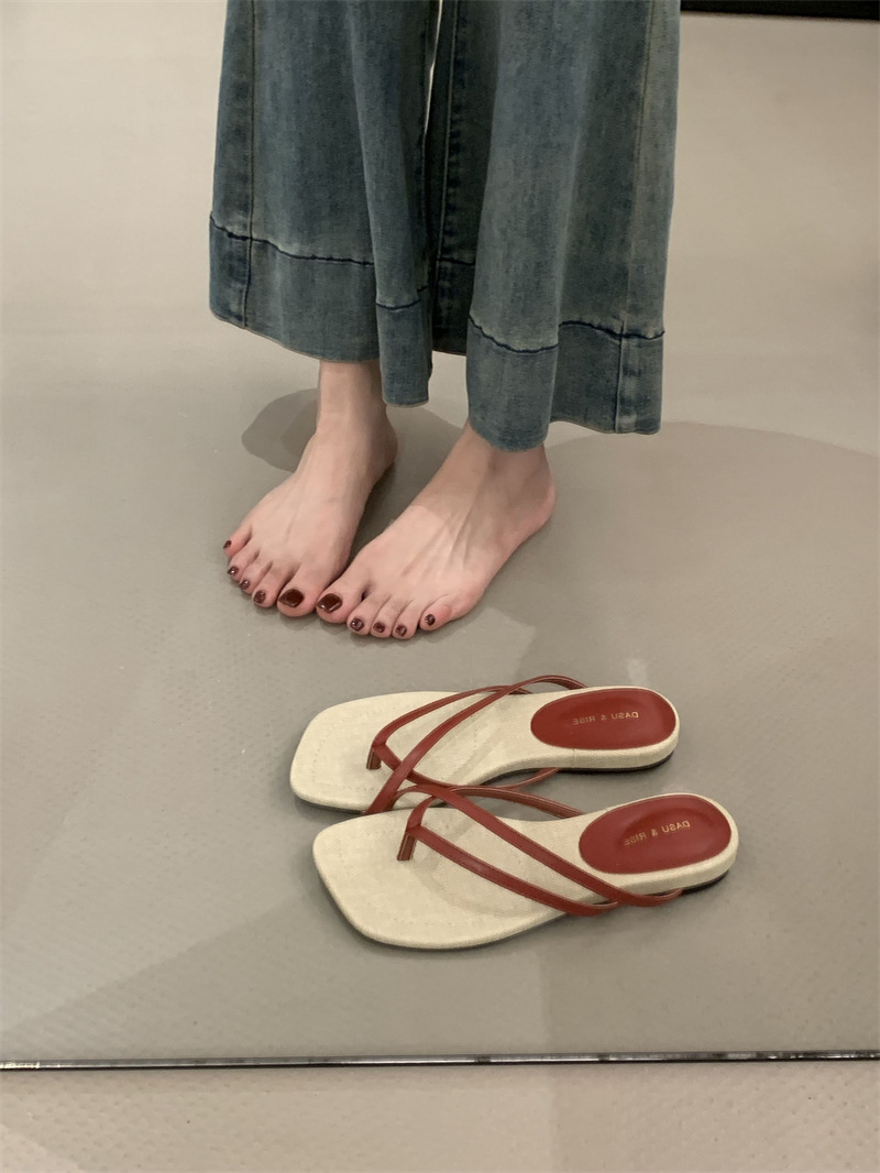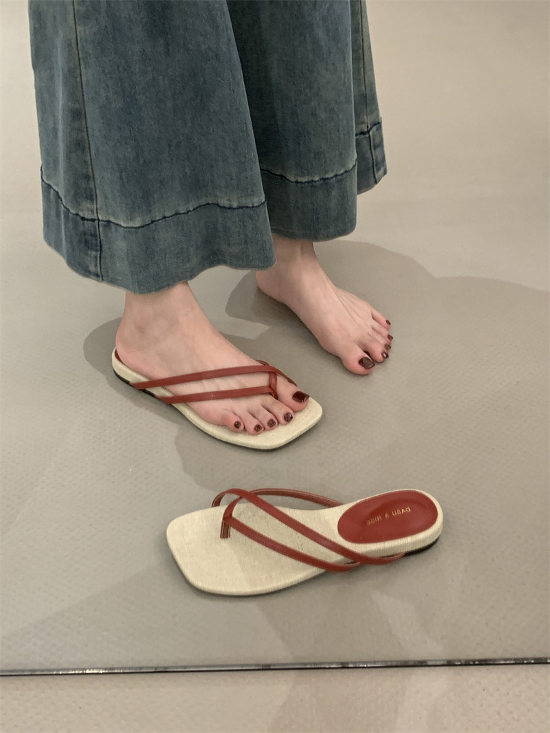 여성용 플랫 슬리퍼 2025 여름 새로운 틈새 디자인 캐주얼 해변 휴가 슬리퍼