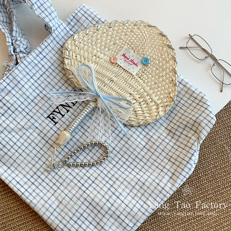새로운 스타일의 귀여운 실버 레이스 나비 팬 도파민 자수 여름 밀짚 팬 소녀스토어 가기