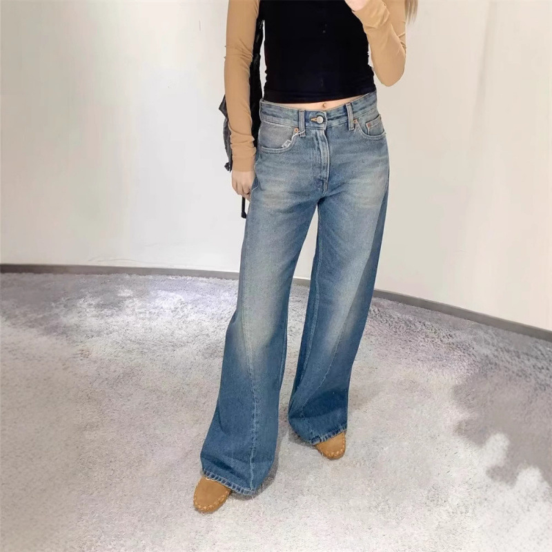 초봄 신상품~디자이너 바이어스토어 m*6 워싱 레트로 스트레이트 청바지 여성용스토어 가기