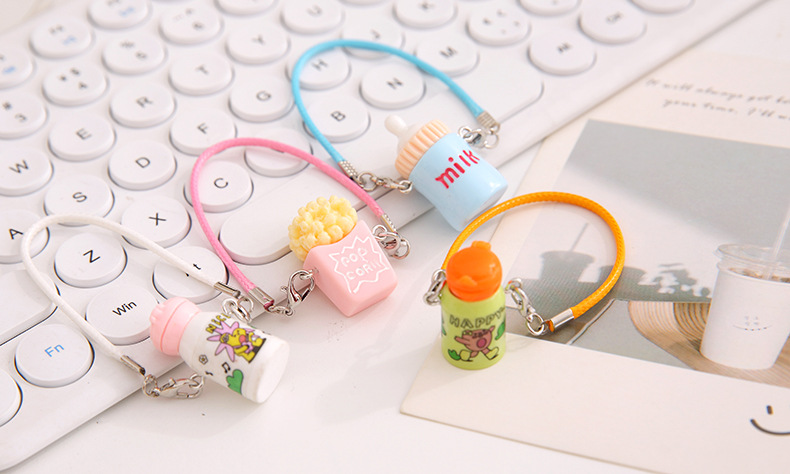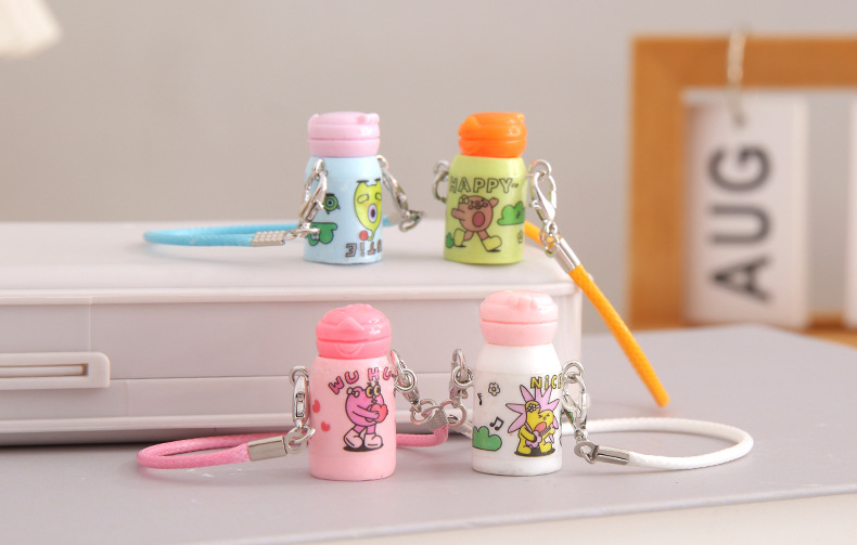 만화 키 체인 미니 보온병 펜던트 귀여운 시뮬레이션 DIY 워터 컵 가방 침실 교수형 키 체인