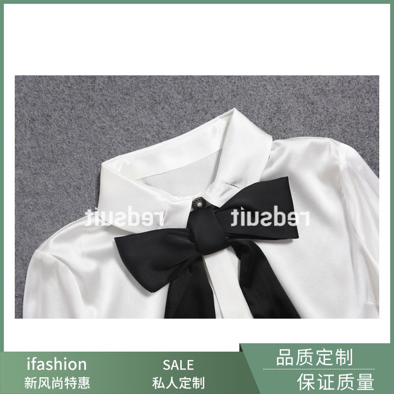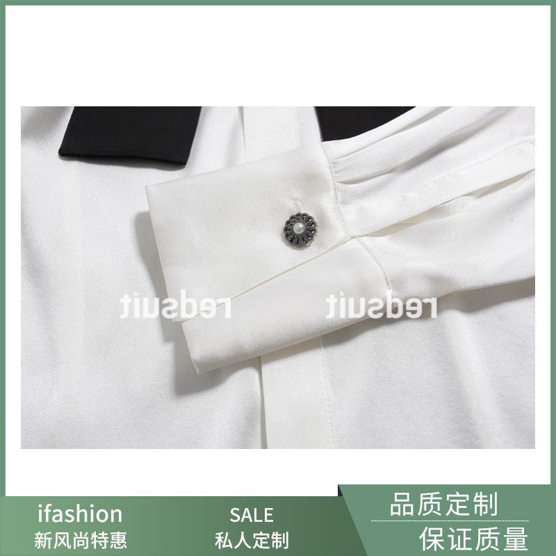 리사 스타일 실키 펄 화이트 스타 같은 스타일 다양한 착용 방법 탈착식 레이스 업 작은 향기로운 셔츠 기질