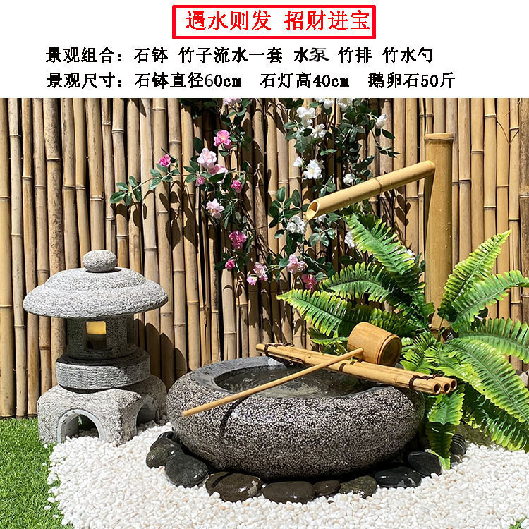 • 돌그릇 80cm + 징루 대나무 워터펌프 대나무 뗏목 대나무 스푼 외경