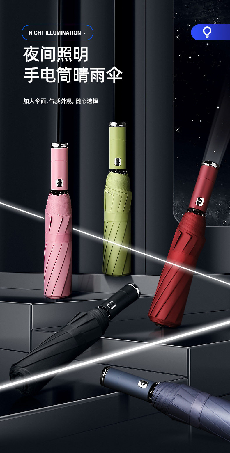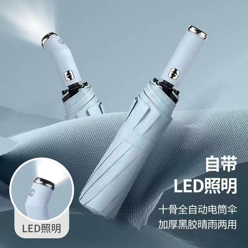 손전등 비닐 우산 조명 우산 회전식 자동 우산 Douyin 자동차 인쇄 LED 방풍 비즈니스