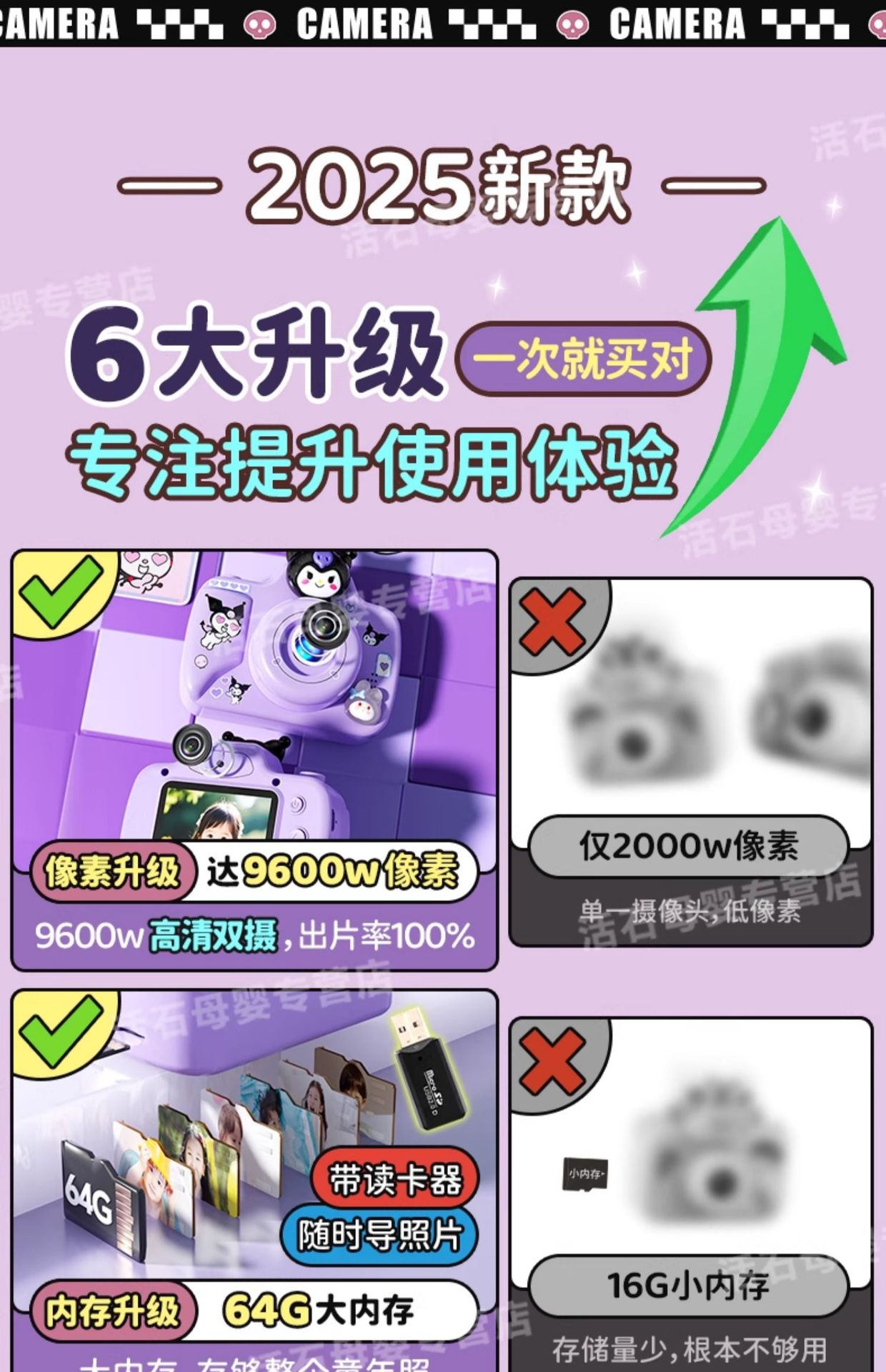 어린이 카메라 사진 2025 미니 카메라 소녀 장난감 새로운 생일 어린이 날 선물스토어 가기