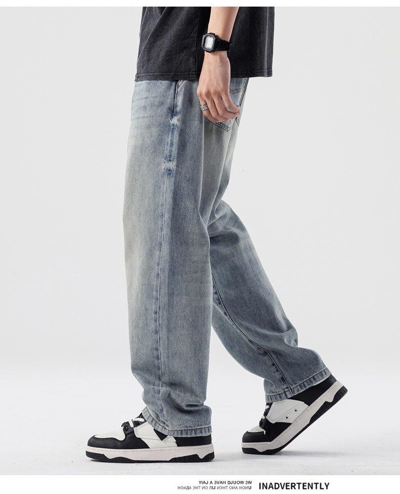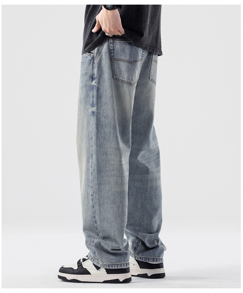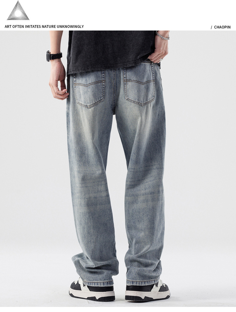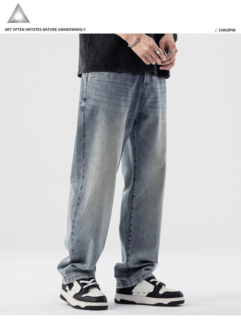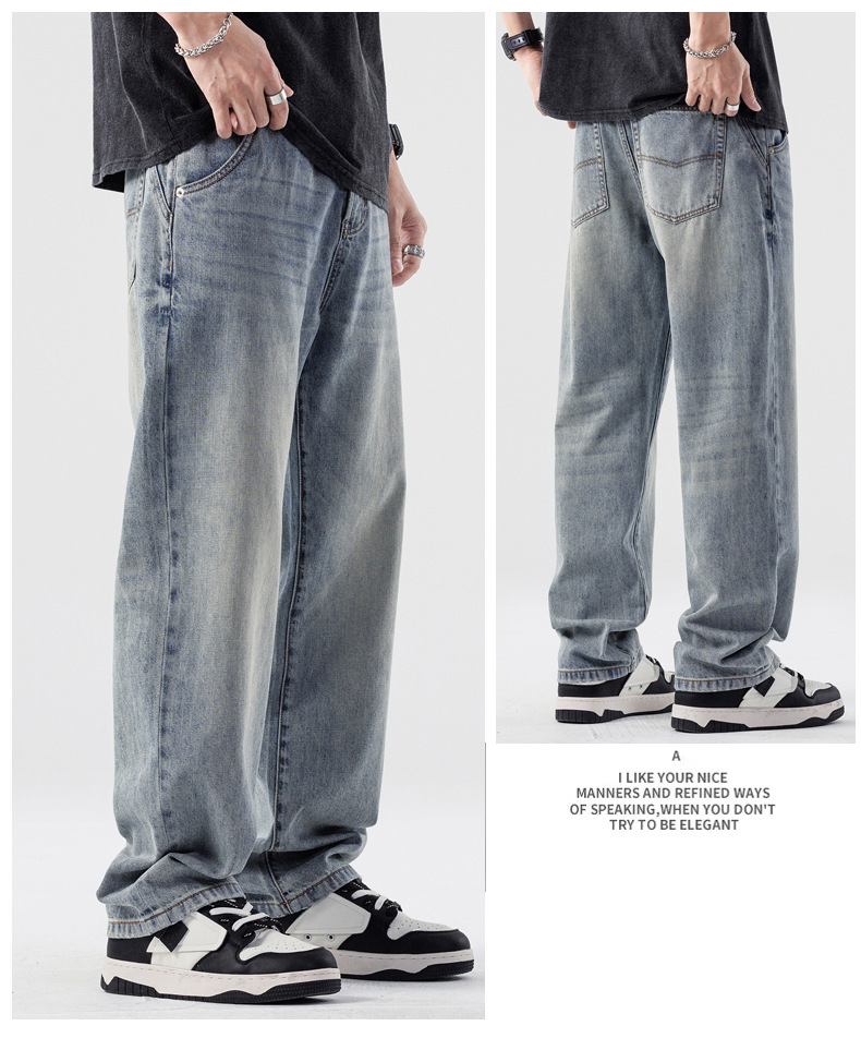남성용 레트로 하이 스트리트 와이드 레그 청바지 봄 여름 얇은 루즈 캐주얼 남성 바지 2024 새로운 트렌디 바지스토어 가기