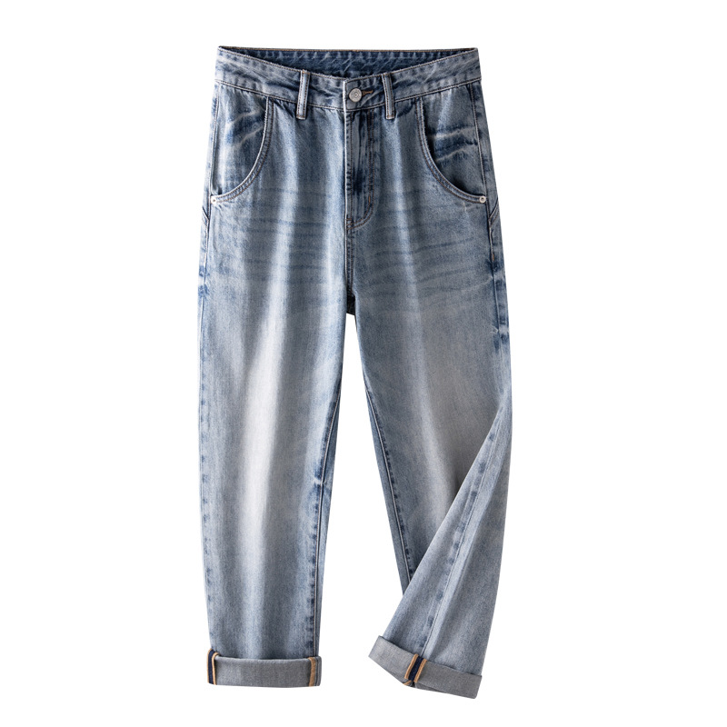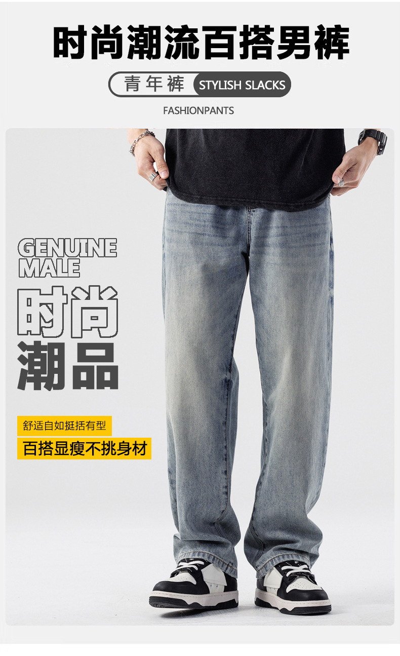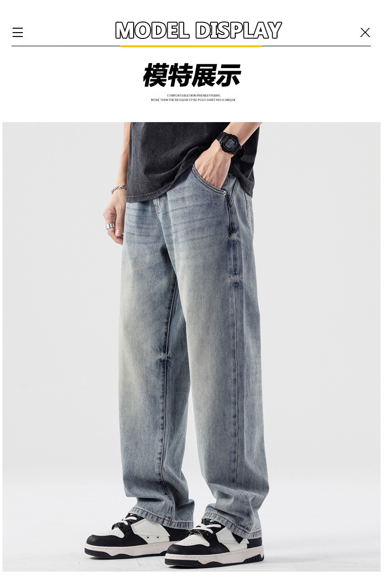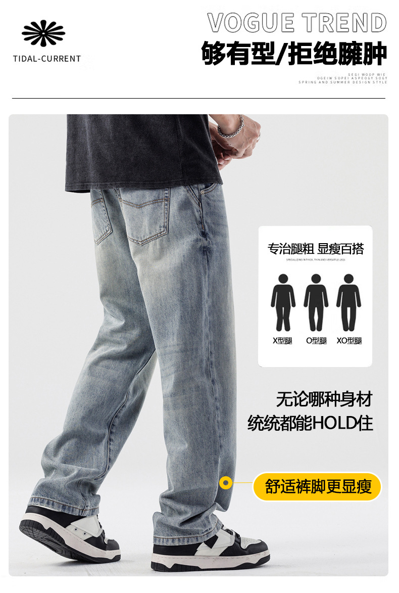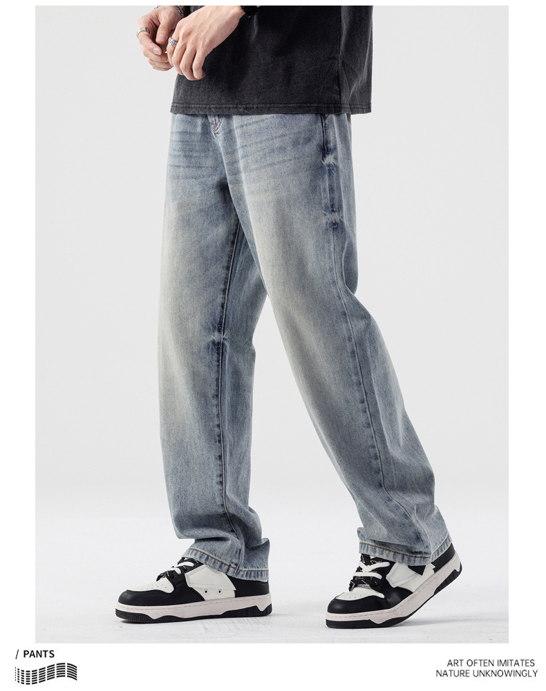 남성용 레트로 하이 스트리트 와이드 레그 청바지 봄 여름 얇은 루즈 캐주얼 남성 바지 2024 새로운 트렌디 바지스토어 가기