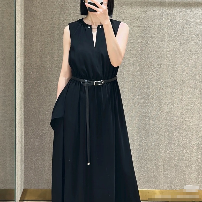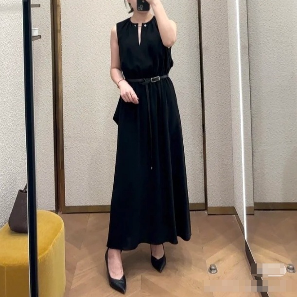MAX25 여름 새로운 우아한 오래된 돈 스타일 식초 반 오픈 칼라 허리 민소매 원피스