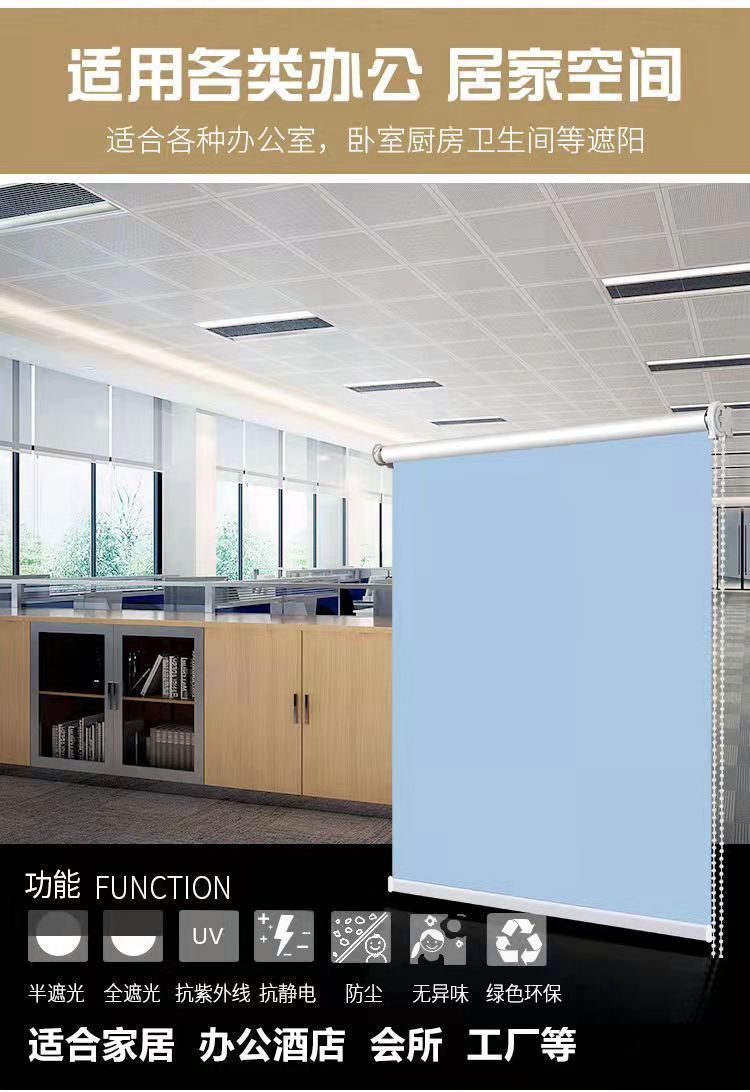 도매 전기 롤러 블라인드 방풍 및 난연성 로고 차광 롤러 블라인드 리프팅 펀치없는 커튼 블라인드 햇빛 패브릭스토어 가기