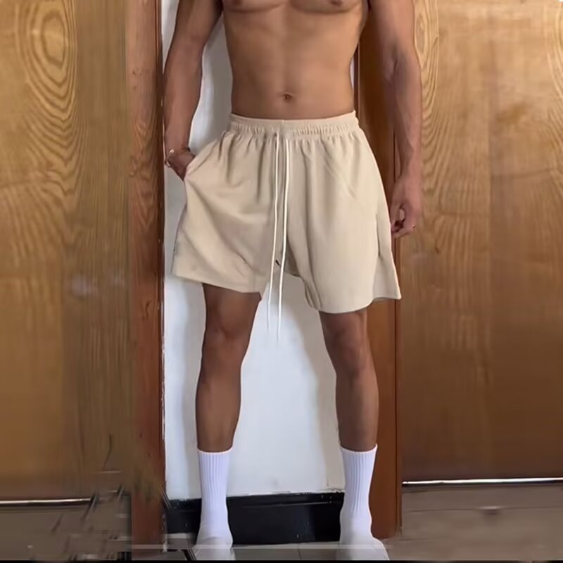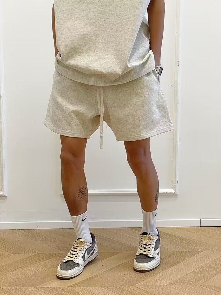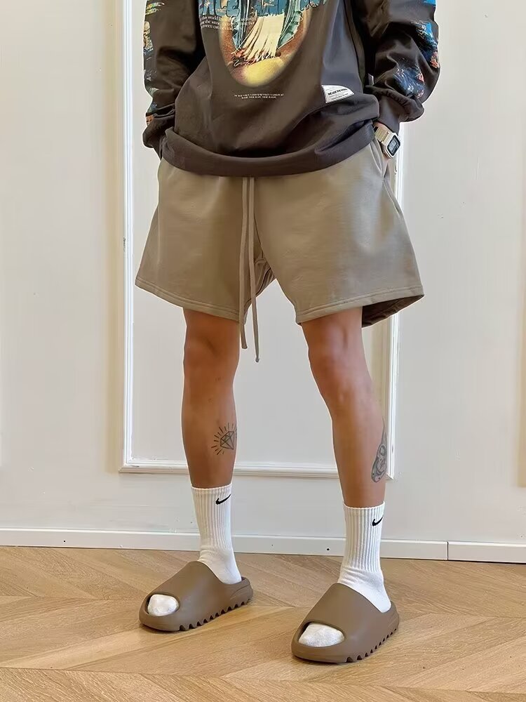 아메리칸 바이브 하이 스트리트 솔리드 컬러 심플 스포츠 반바지 남성 여름 트렌디 브랜드 스트레이트 캐주얼 드로스트링 5부 바지