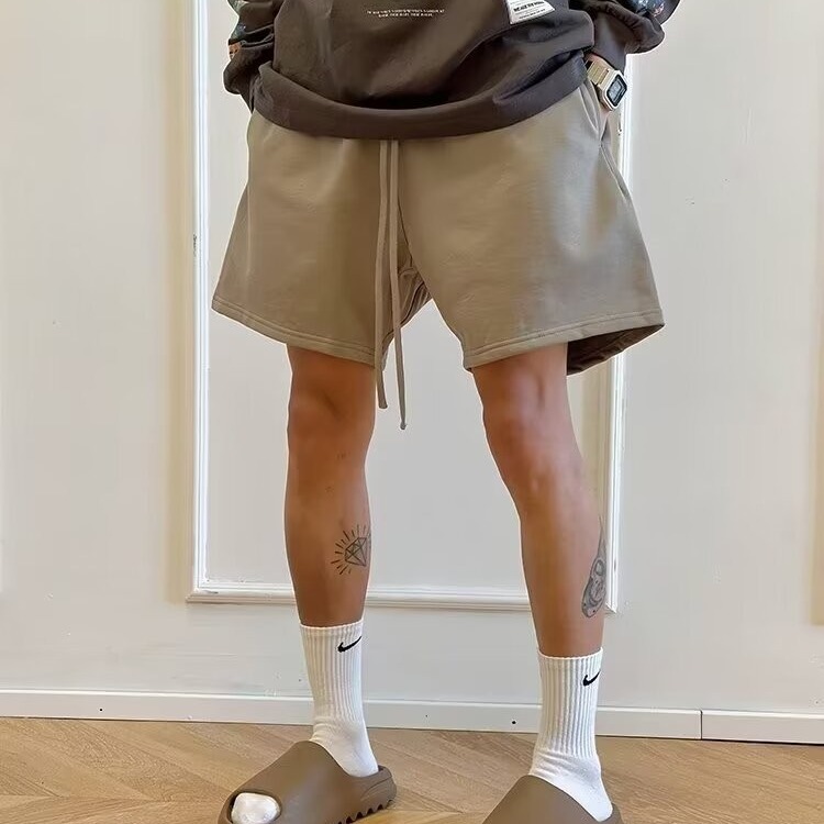 아메리칸 바이브 하이 스트리트 솔리드 컬러 심플 스포츠 반바지 남성 여름 트렌디 브랜드 스트레이트 캐주얼 드로스트링 5부 바지스토어 가기