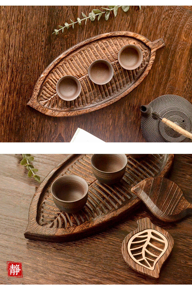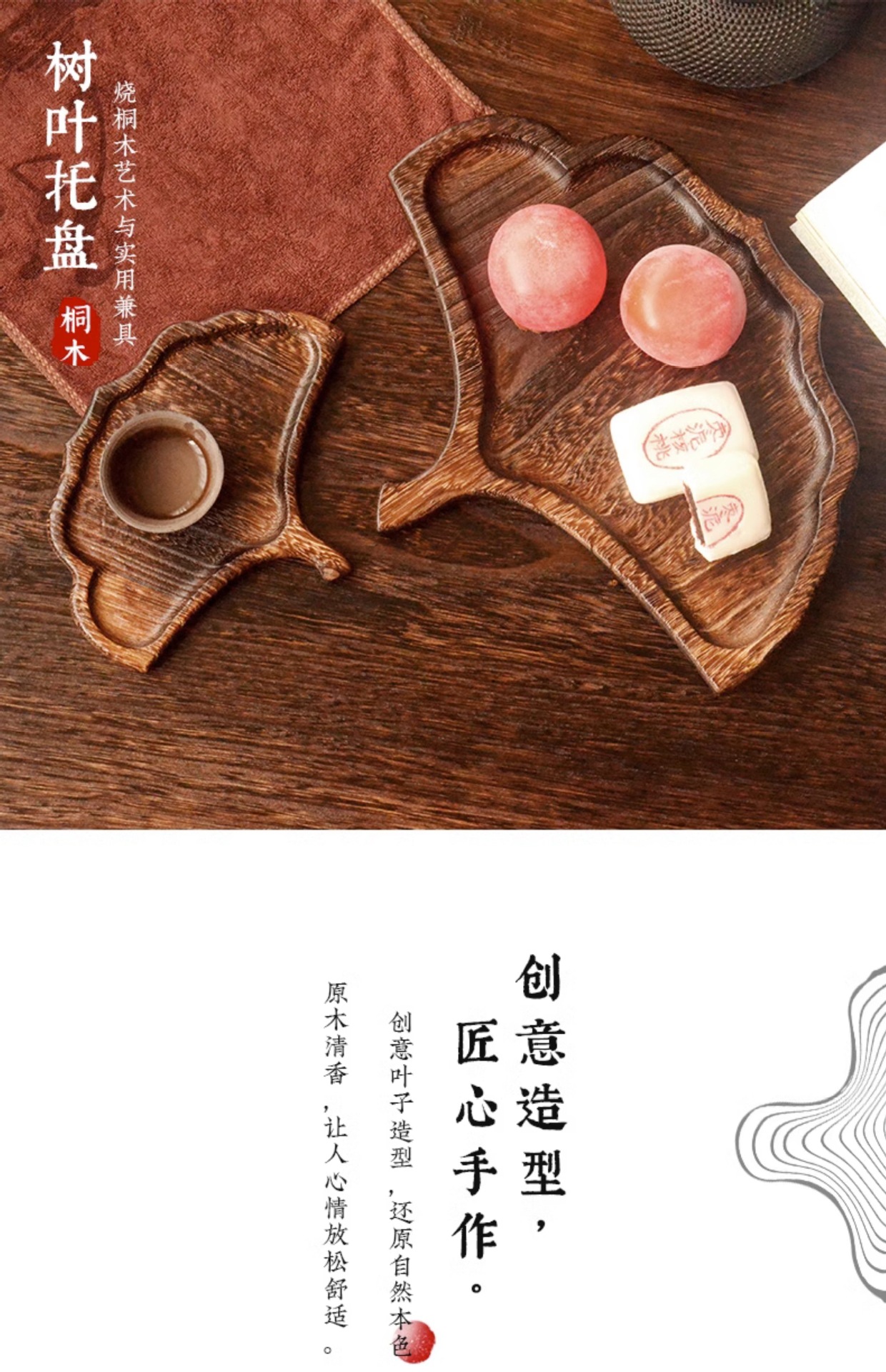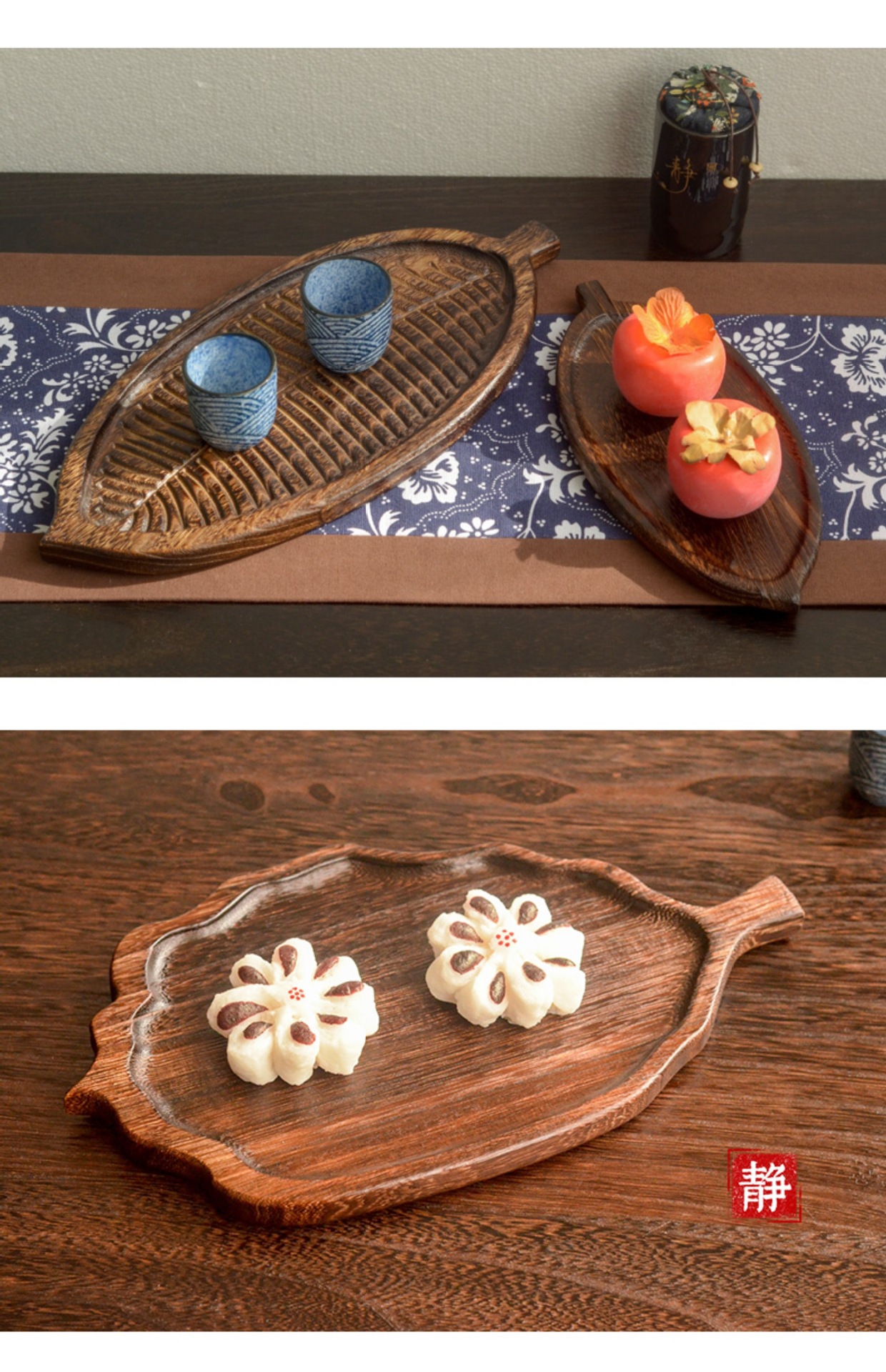 나무 트레이 단단한 과자 과일 트레이 일본식 창작 나뭇잎 드라이 버블 테이블 차 가정용 차 트레이 바나나 잎 나무 트레이 B&